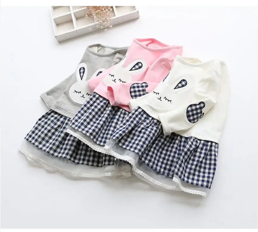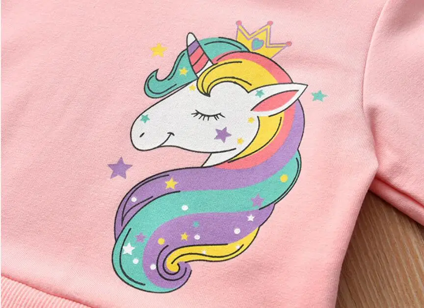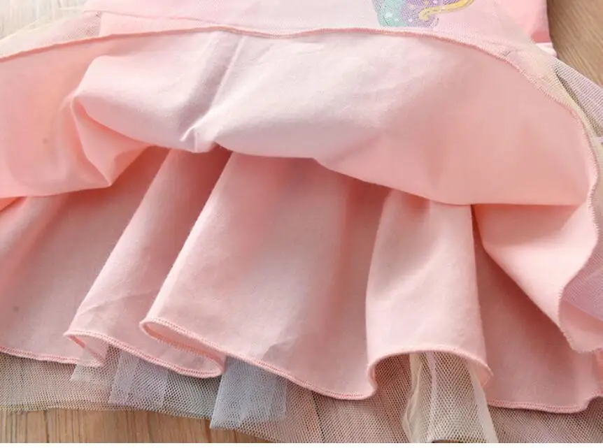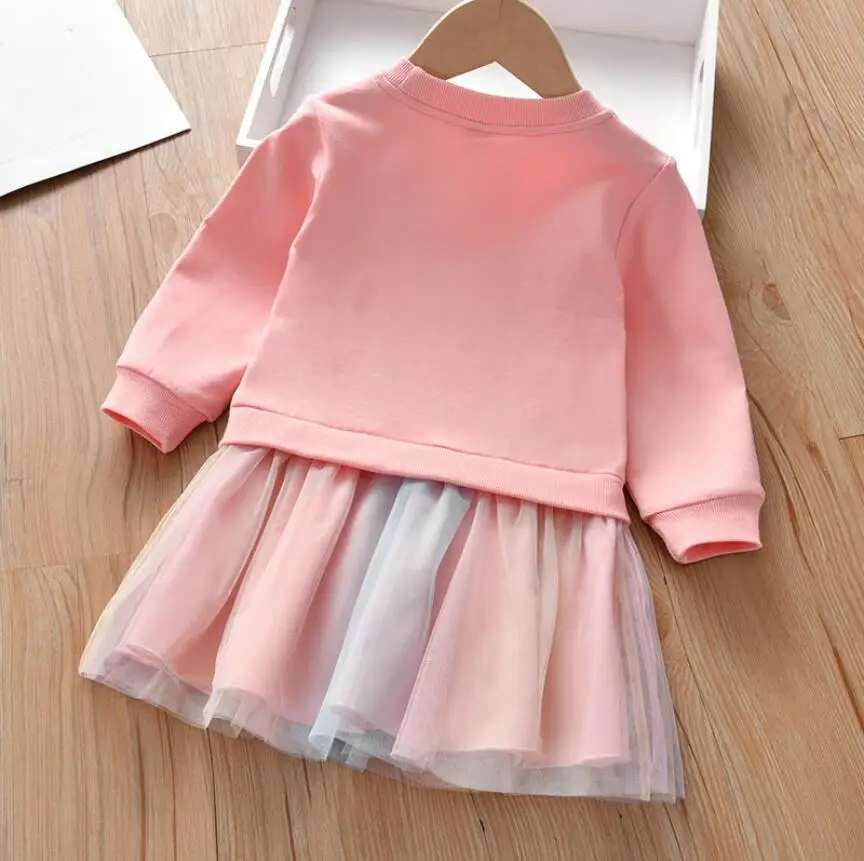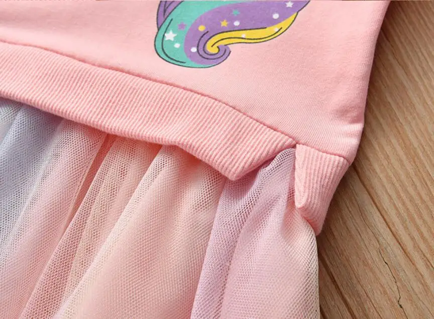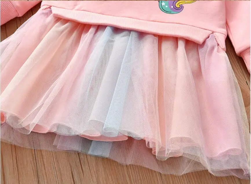 Girl Clothing Autumn New Cartoon Unicorn Printed Long-sleeved Shirt Stitching Rainbow Mesh Princess Dress for 2 3 4 5 6 Years