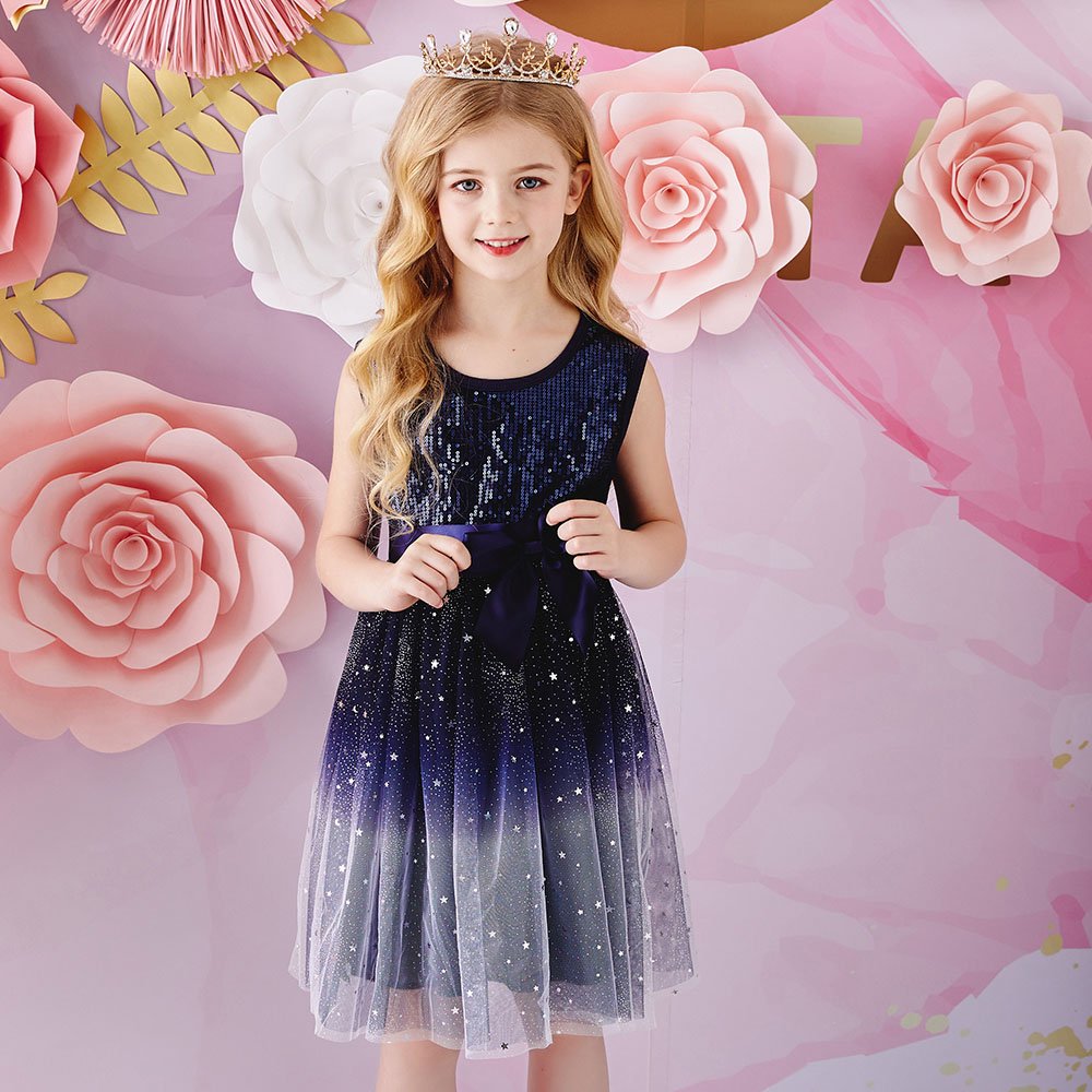 Girls Dresses Girls Sequins Sleeveless Dresses Kids Elegant Cute Princess Tutu Vestidos Children Summer Tulle Dress