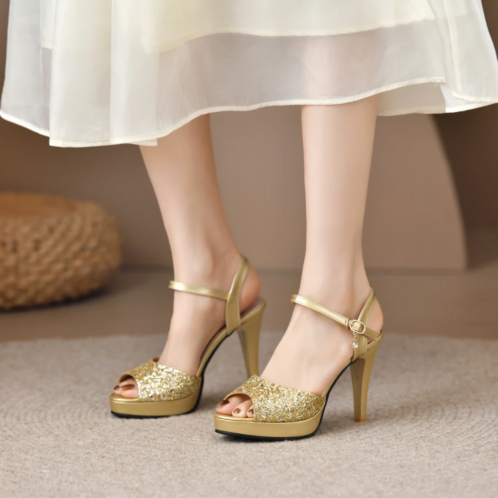 Gold Platform Sandals Women New High Heels Women Wedding Shoes Fashion Peep Toe Sandalias De Mujer