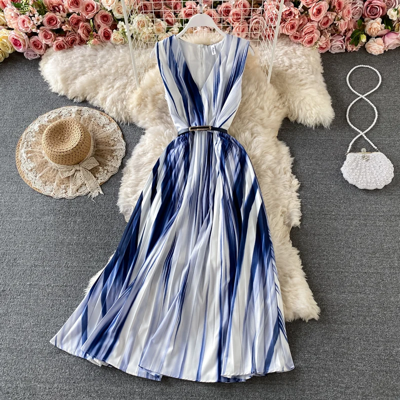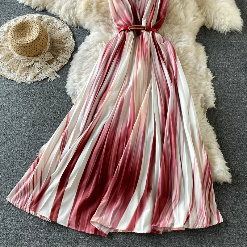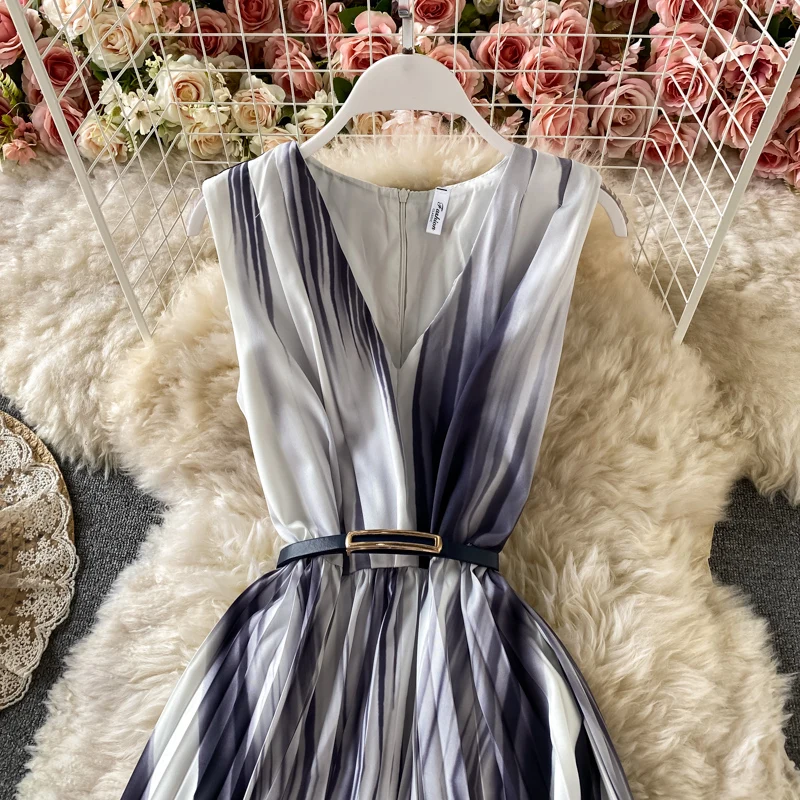 Gradient Fashion Women Summer Dress Sleeveless V Neck Chic Lady Party Dresses Fashion Elegant Banquet Vestidos A Line