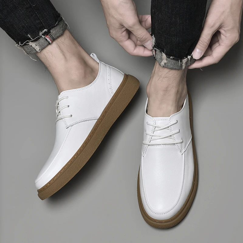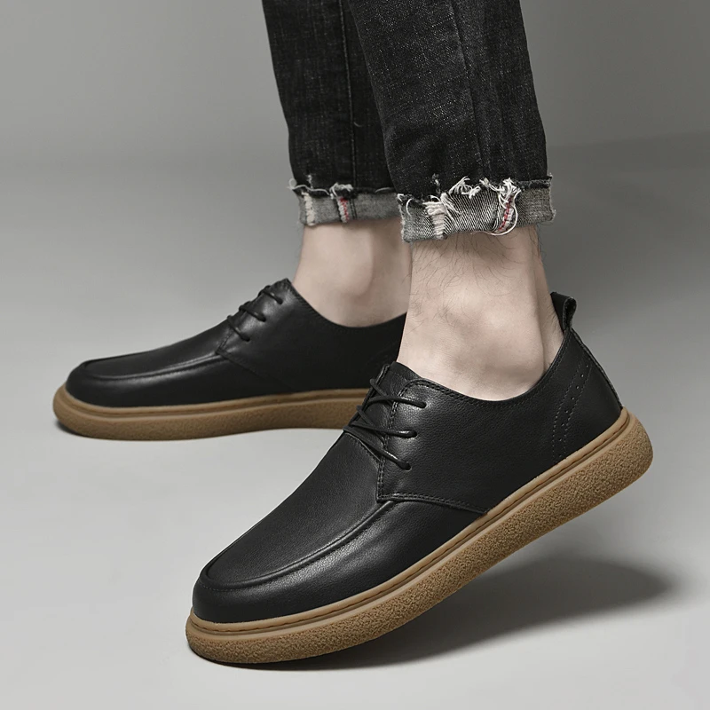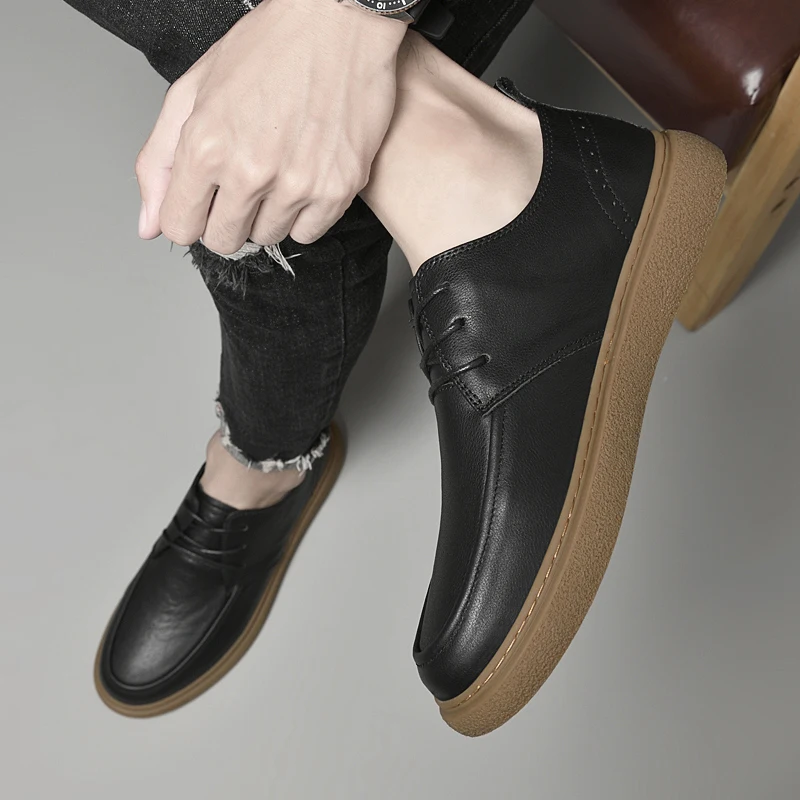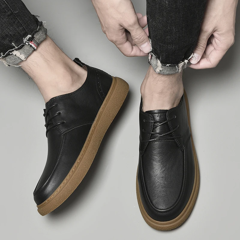 Handmade Mens Casual Shoes Genuine Leather Men Sneakers High Quality Male Casual Shoes Luxury Brand Lace Up Shoes Oxfords Flats