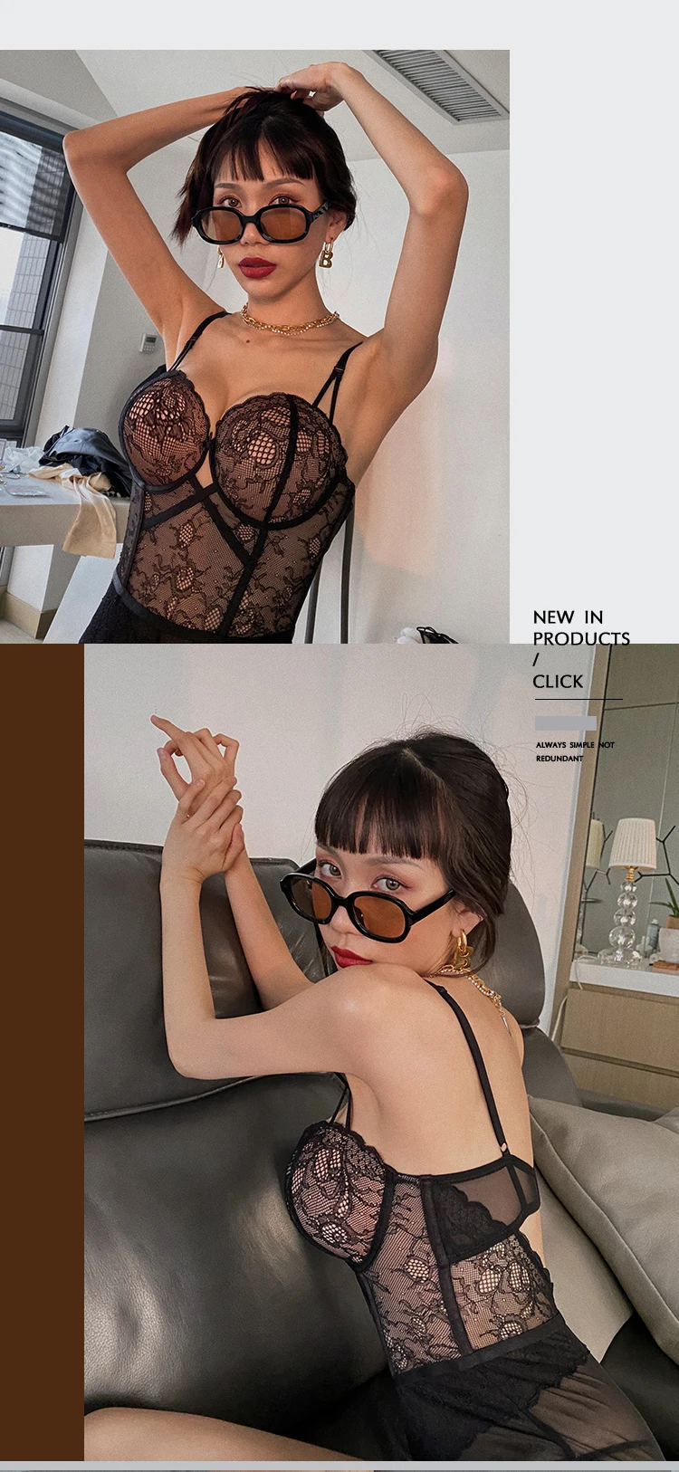 High Quality Sexy Lace Bodysuit New Women Push Up Bra Set Shapewear Classic Black Transparent Hollow Bodycon Underwear Onesies