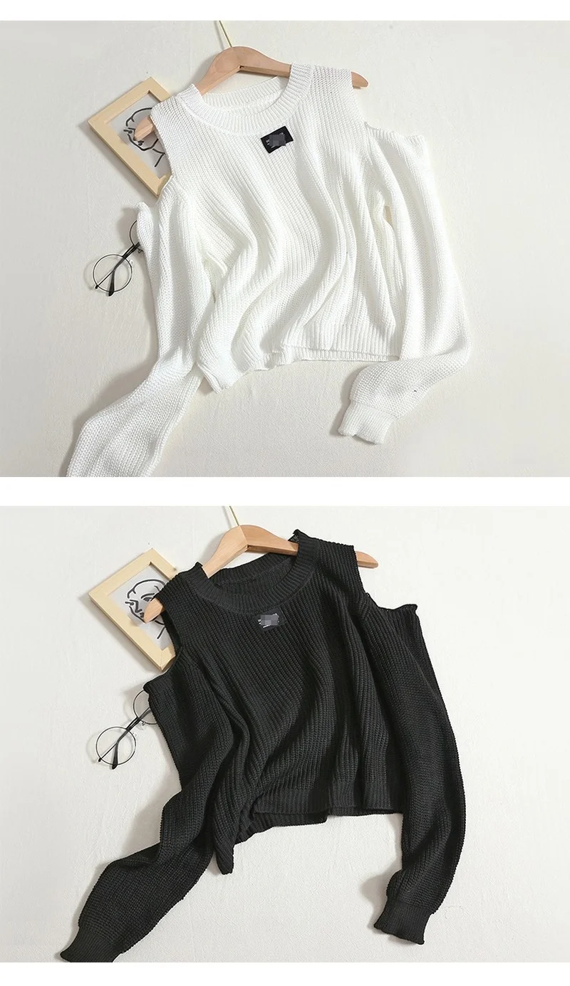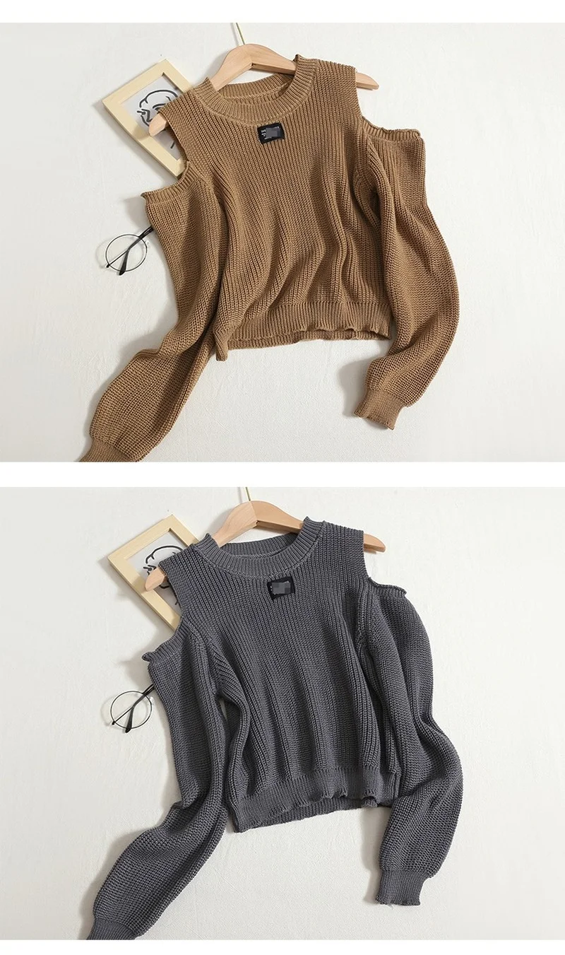 Chic Fashion Women Tops Autumn Korean O Neck Long Sleeve Sweater Solid Off Shoulder Thin Knit Pullover Short Top Mujer