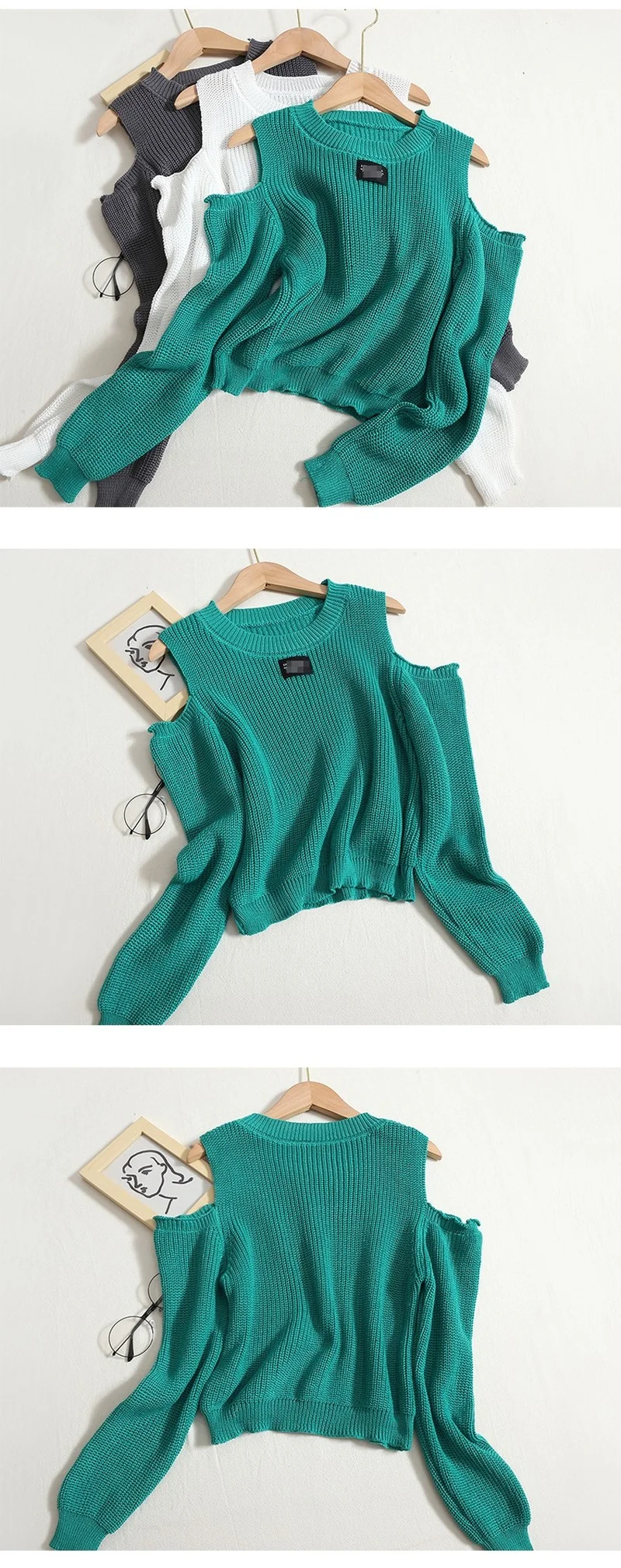 Be the first to review “Chic Fashion Women Tops Autumn Korean O Neck Long Sleeve Sweater Solid Off Shoulder Thin Knit Pullover Short Top Mujer”