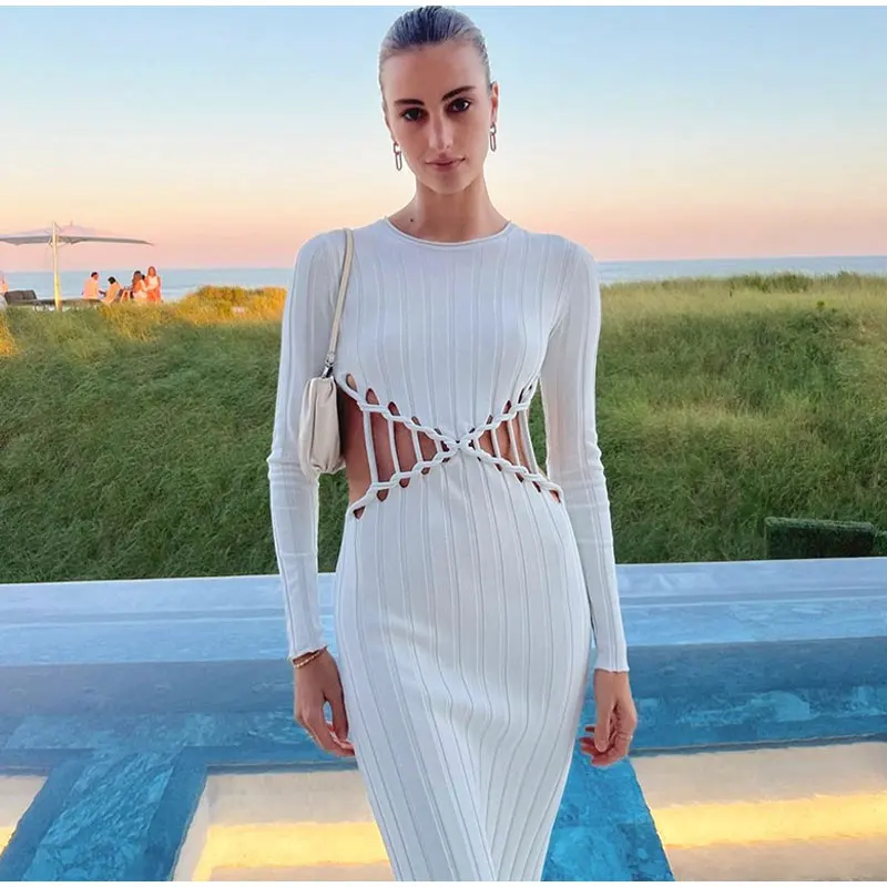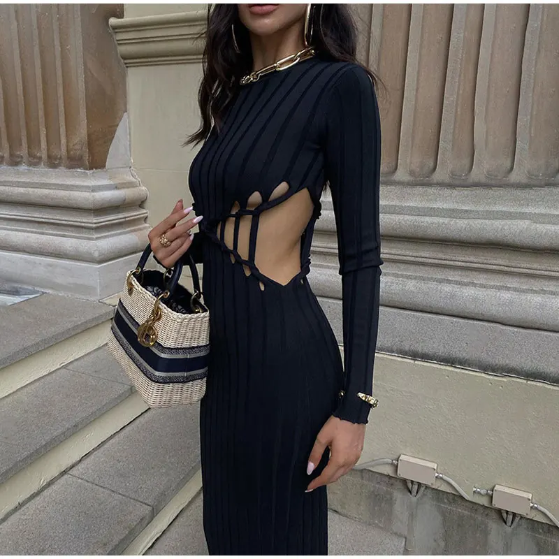 Hollow Out Long Bodycon Dress Women Spring Sexy O-neck Female Evening Dresses Fashion Slim Party Club Ladies Vestidos