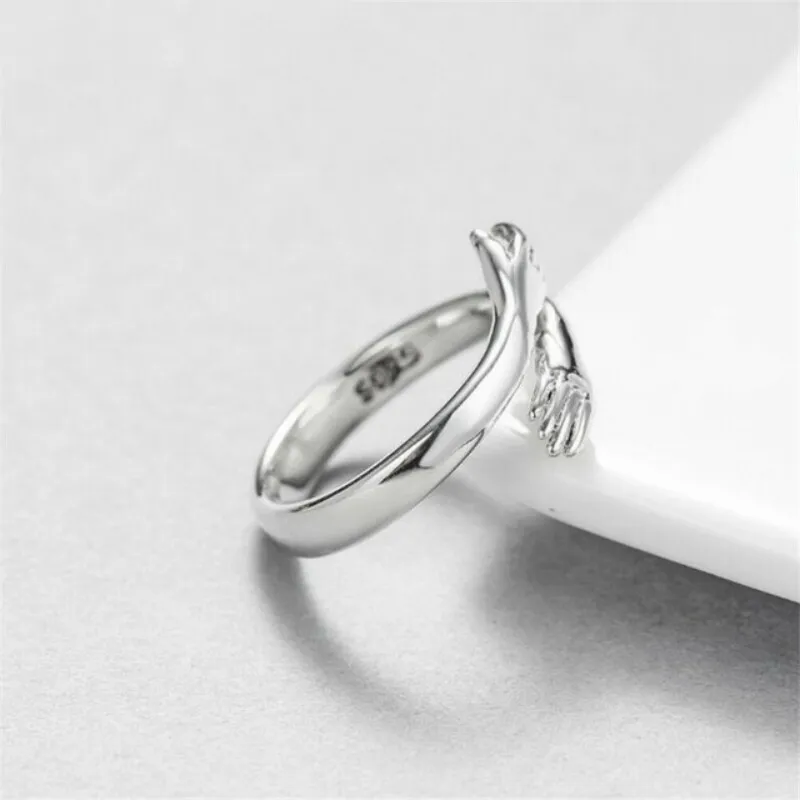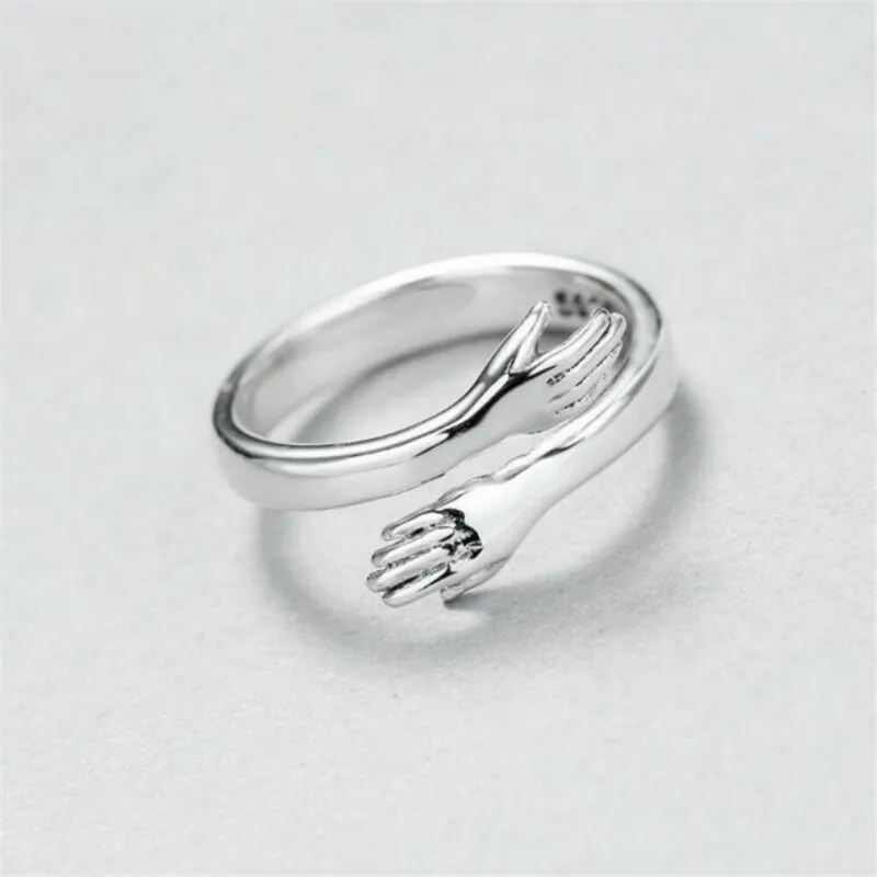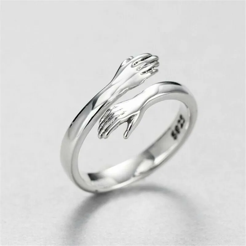Hot new 925 sterling silver European and American jewelry love hug ring retro fashion tide flow open ring