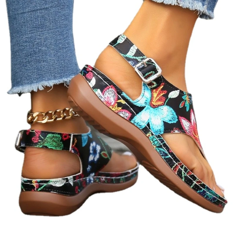 Hot Sale Shoes Female Buckle Women’s Sandals Summer Pinch Toe Mixed Colors Outdoor Casual Beach Wedge Large Size Sandals