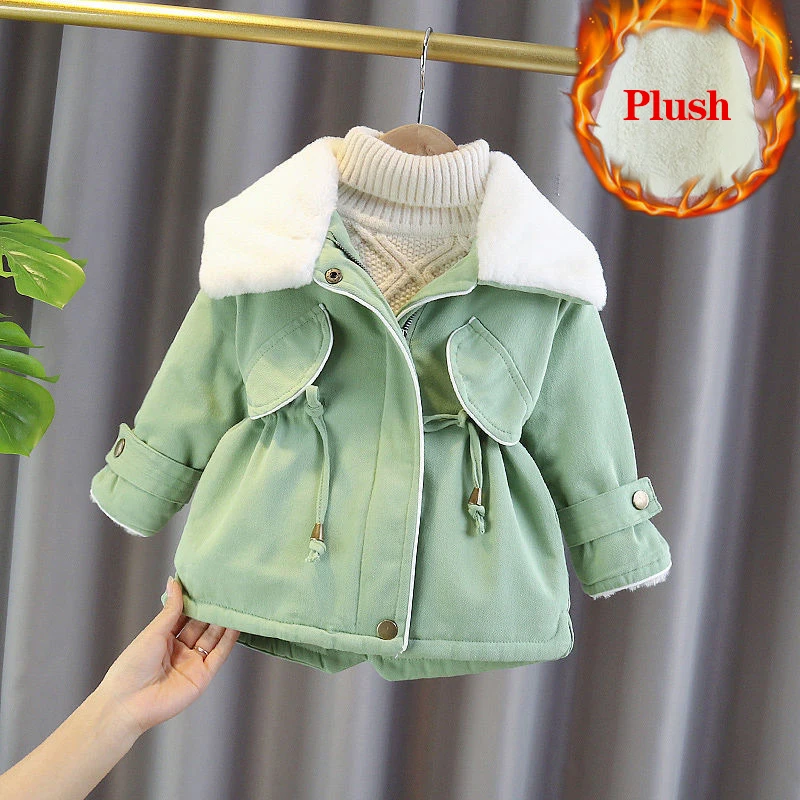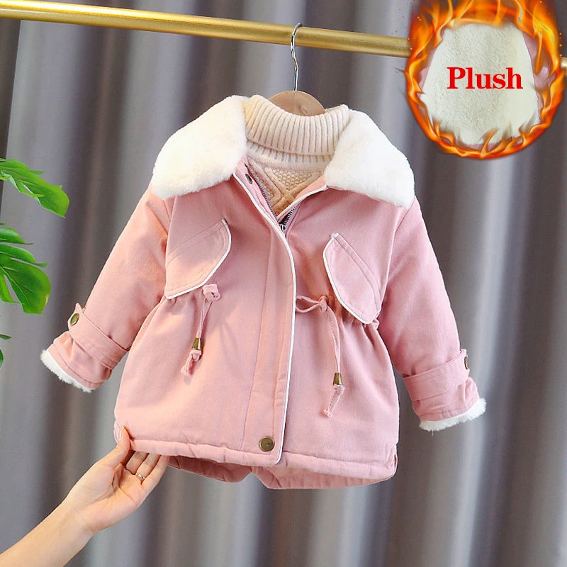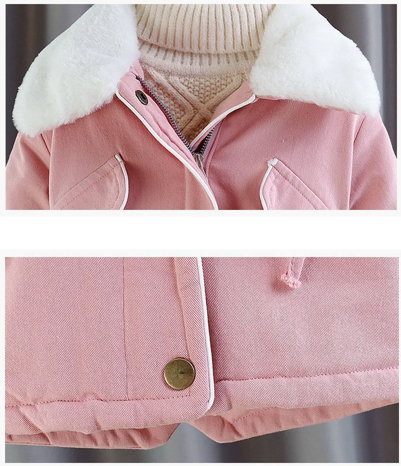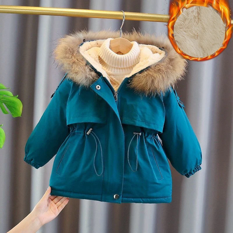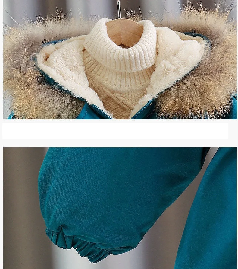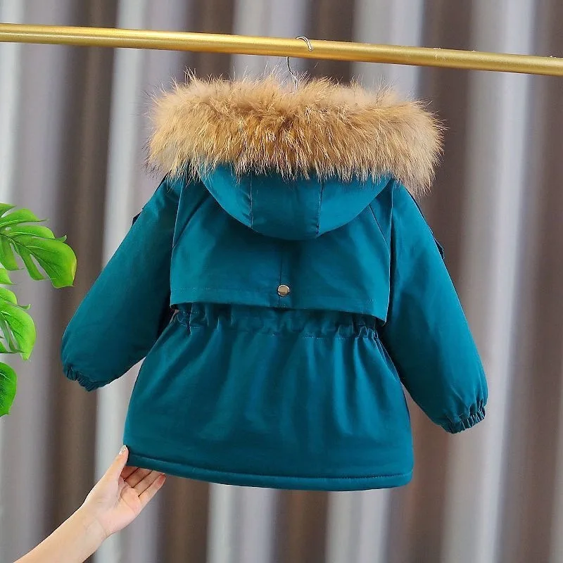 Kids Girl Jacket Big Fur Warm Toddler Children’s winter cotton padded clothes girls thickened Hooded cotton padded coat
