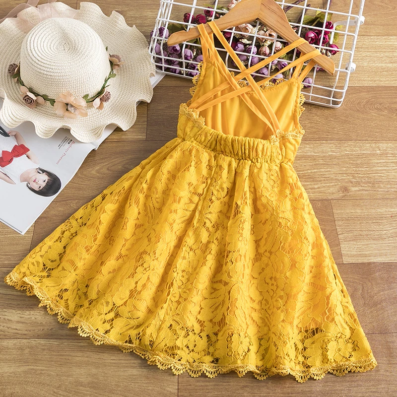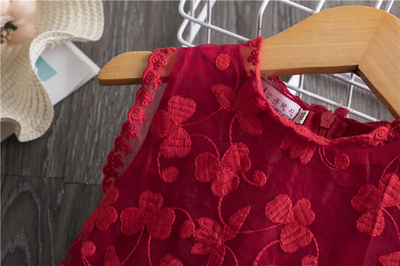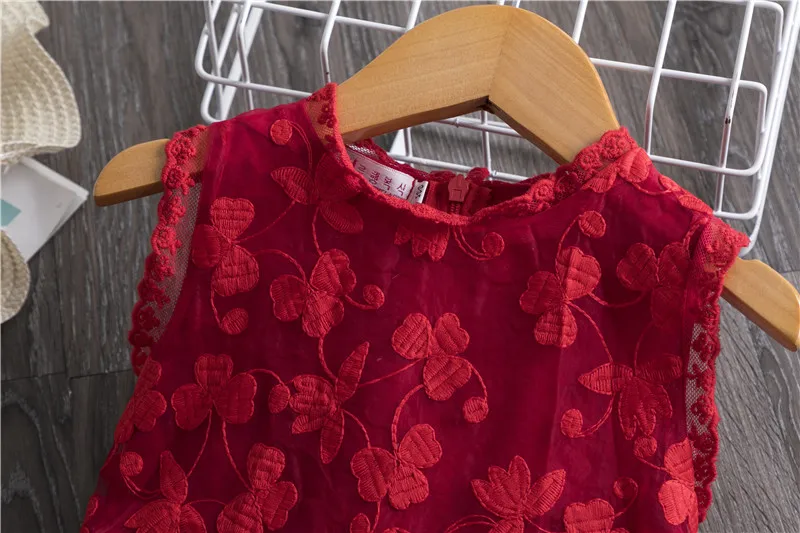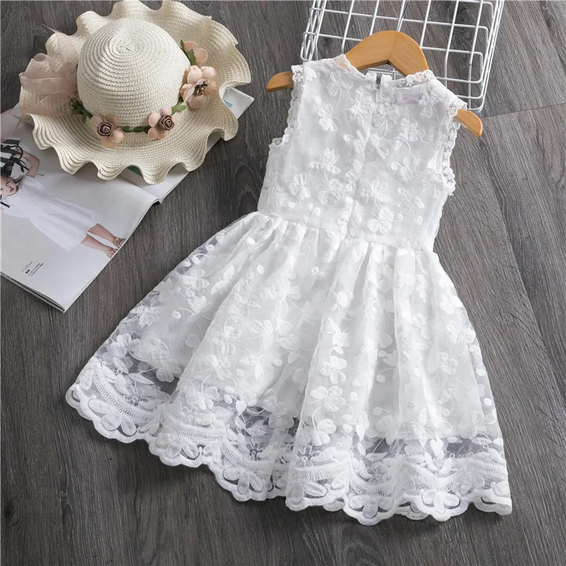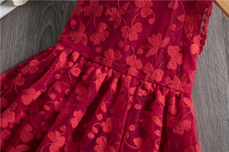 Lace Embroidery Dresses For Girls Kids Sling Sleeveless Flower Princess Elegant Party Tutu Vestidos Children 3-8 Year Sundress
