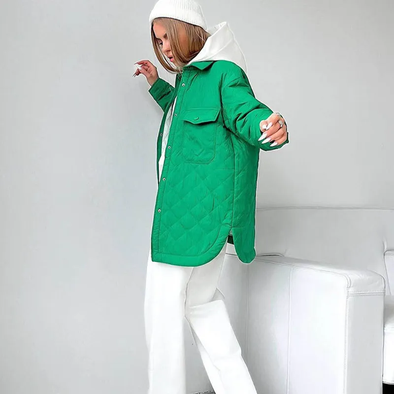 Long Argyle Single Breasted Women’s Winter Jacket Casual Turn Down Collar Belt Loose Overcoat Office Lady Outwear Woman Clothes