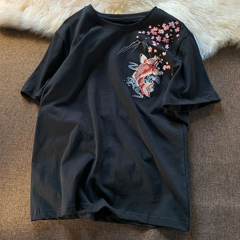 Be the first to review “Lovers Embroidered Koi Fish Summer T-shirt Men Cotton T Shirt Students Casual Tee Short Sleeves Top Loose T-shirt 4XL”