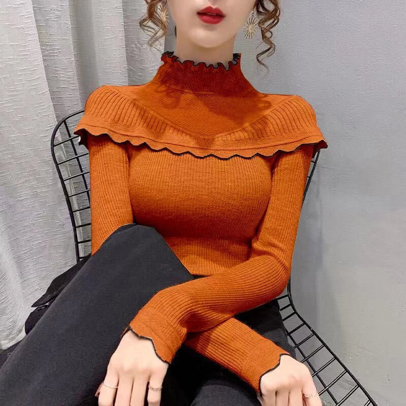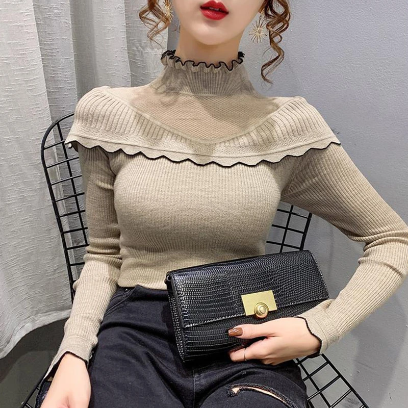 Lucyever New Autumn Winter Sweaters Women Fashion Patchwork Half Turtleneck Knitted Pullover Women High Elastic Slim Knitwear