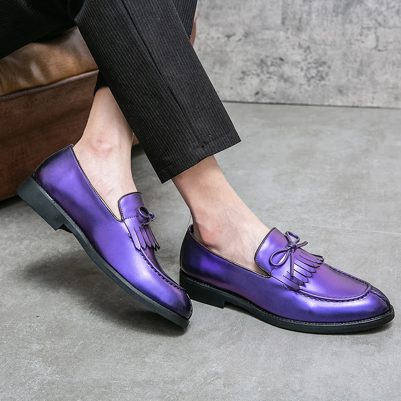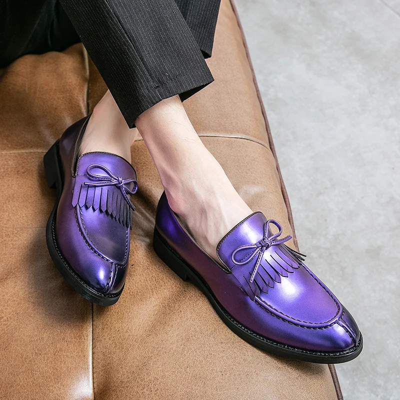 Luxury Brand Men’s Leather Shoes New Banquet Dress Shoes Men’s Trendy Casual Shoes Purple High-end Men’s Business Shoes