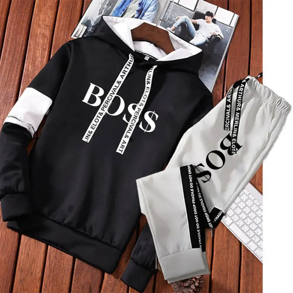Men Fashion Luxury Tracksuit Long Sleeve Hoodie + Sports Pants Sets Pullover Sweater Tops and Jogging Pants Casual Outfit