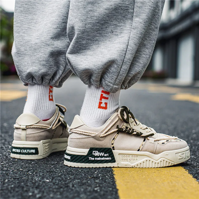 Men Skateboarding Shoes Canvas Thick Bottom Platform Shoes Comfortable Breathable Vulcanized Shoes Casual Sneakers Student Shoe