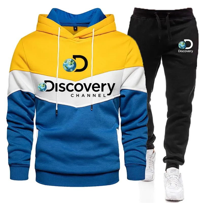 Men Tracksuit Hoodies Sweatshirt Sweatpants Suit Autumn Winter Sportswear Sets Patchwork Men’s Pullover Set