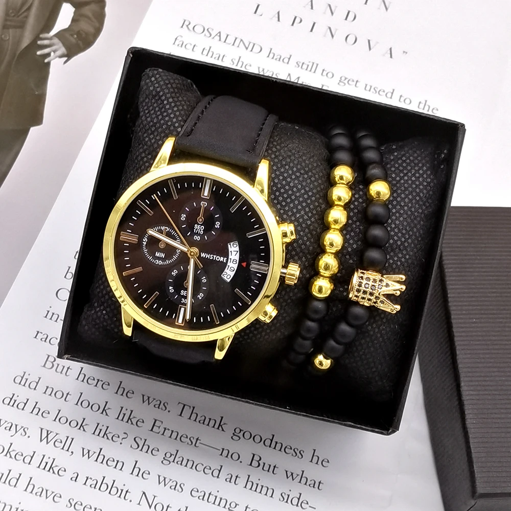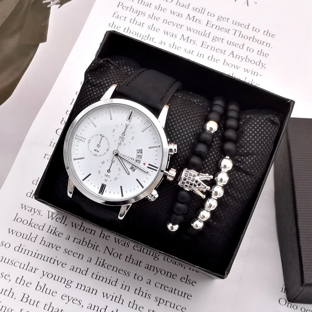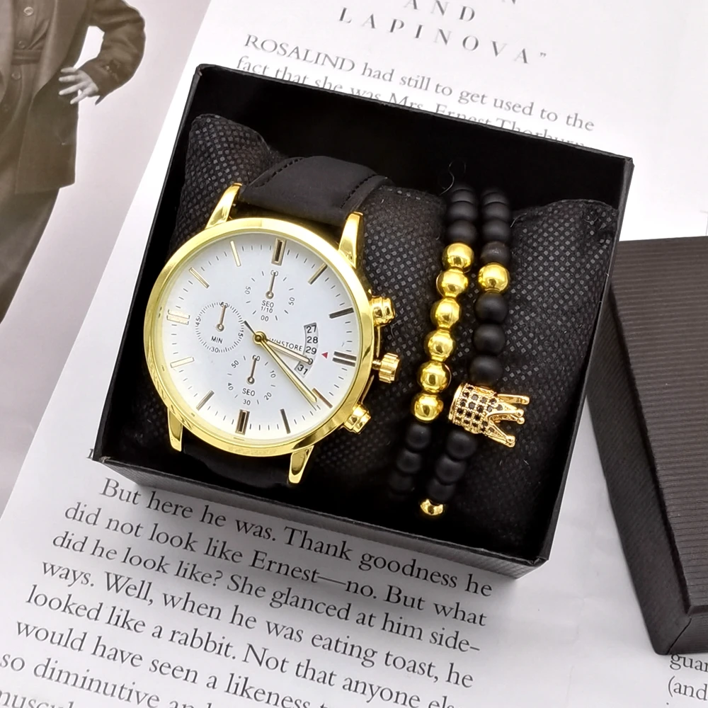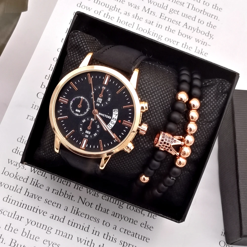 Men Watches Luxury Men’s Fashion Casual Dress Watch Calendar Quartz Wristwatches Sport Relogio Masculino Beaded Bracelet Set