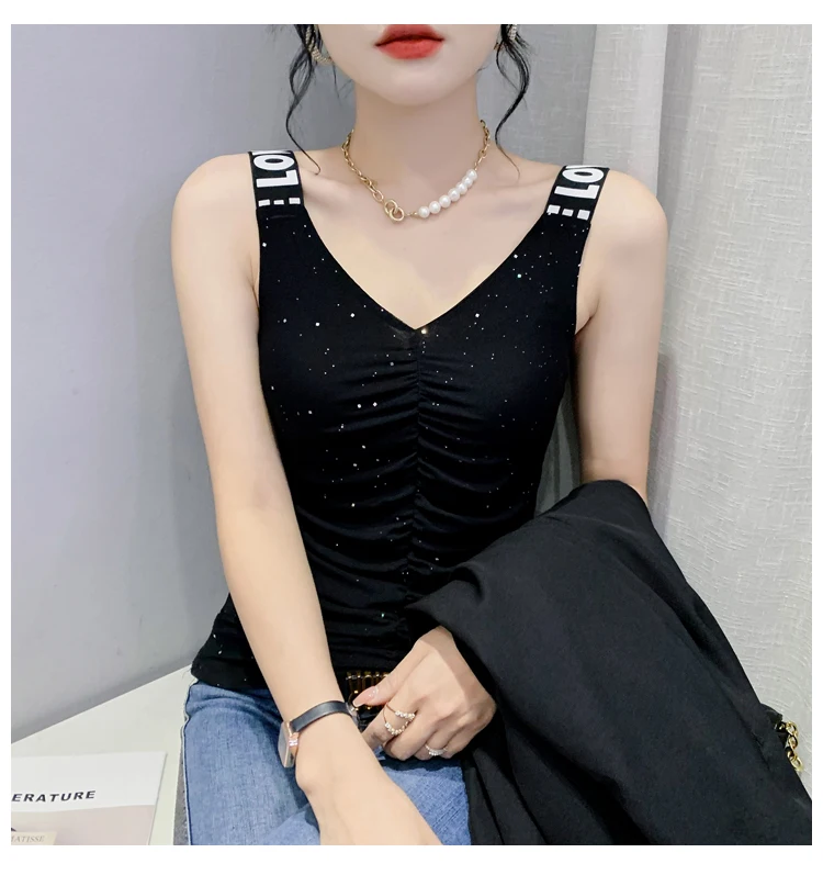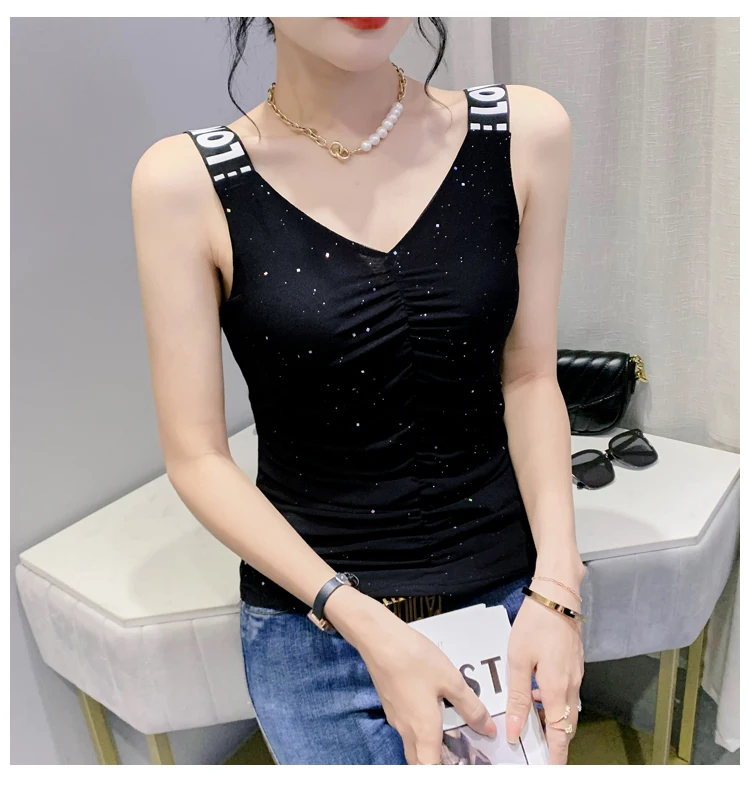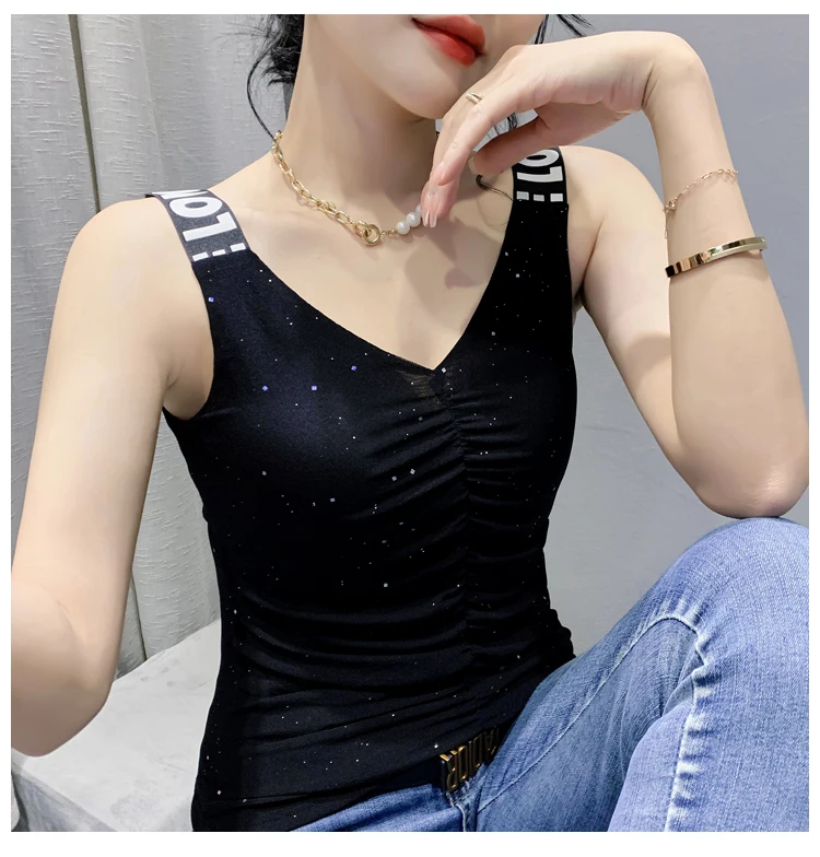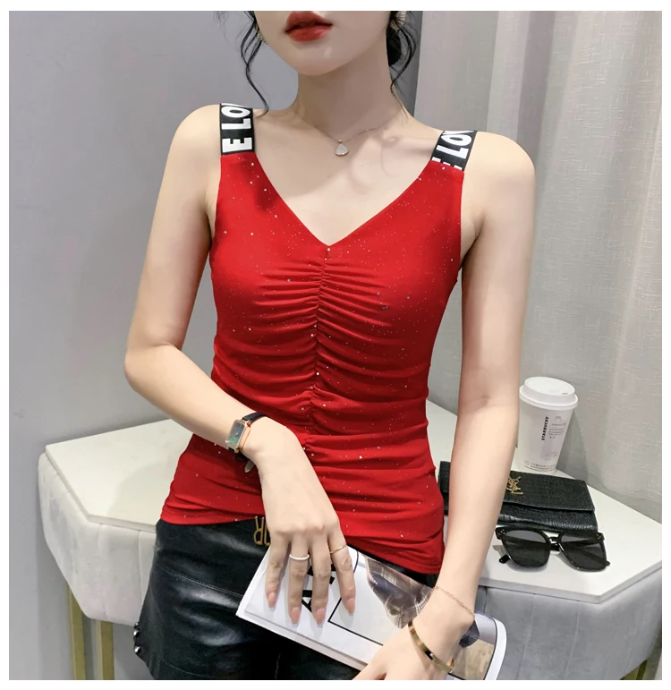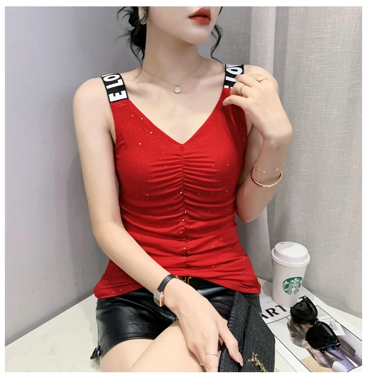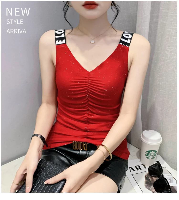 Summer Sleeveless Women Tank Tops Fashion Casual V-Neck Solid Color Camisole Camisetas Female T-Shirt