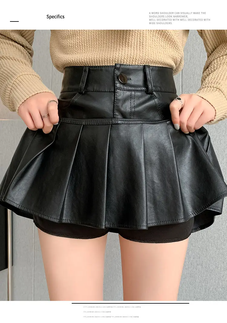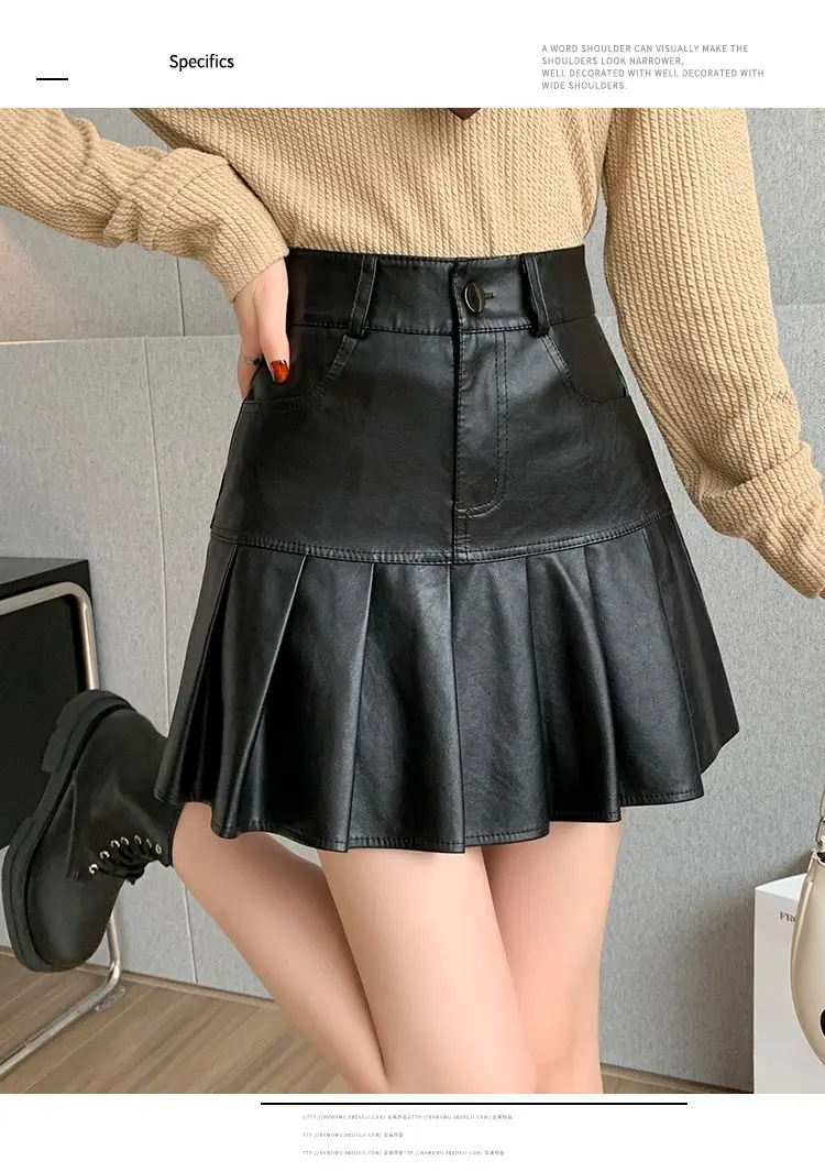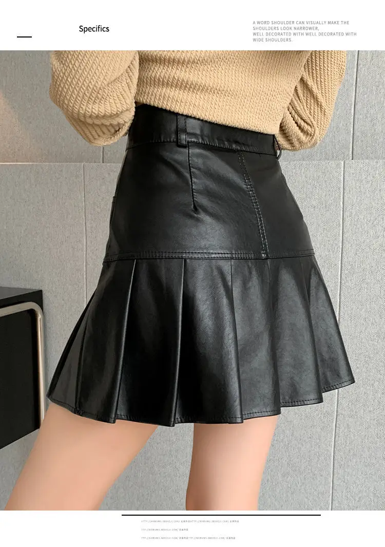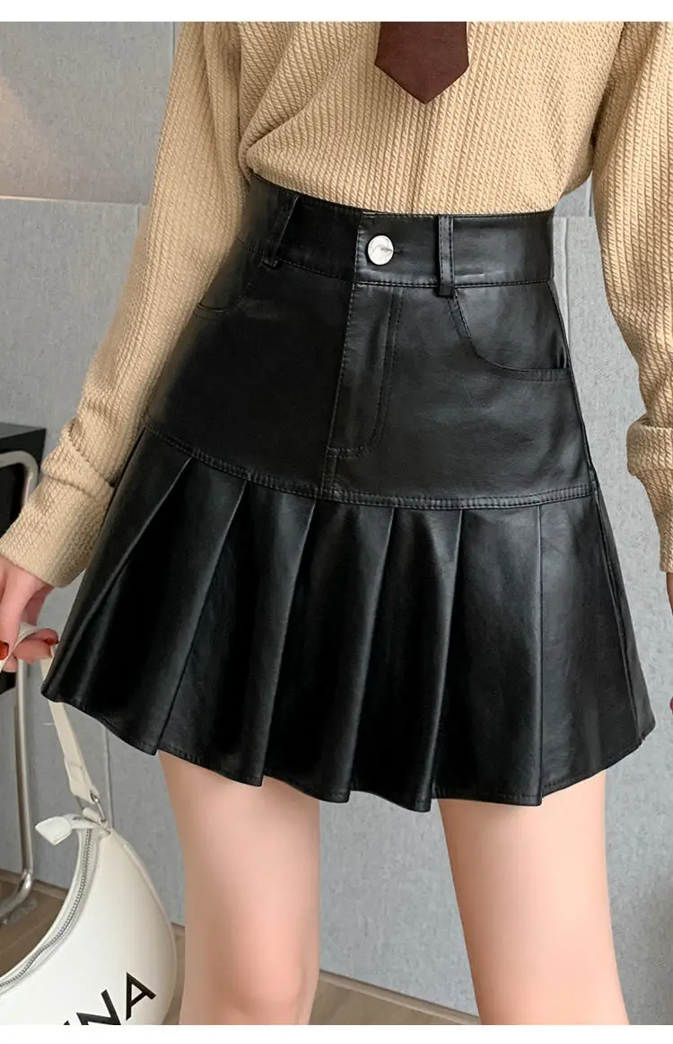 New Black PU Leather skirt Korean fashion high waist Fauxer leather pleated skirt Mini Pleated Skirt