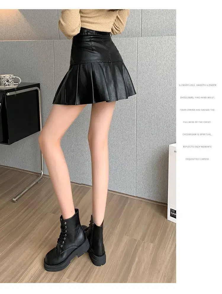 Be the first to review “New Black PU Leather skirt Korean fashion high waist Fauxer leather pleated skirt Mini Pleated Skirt”