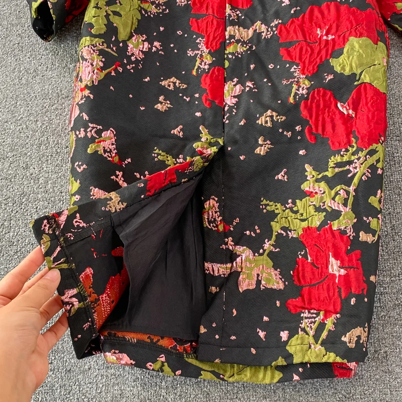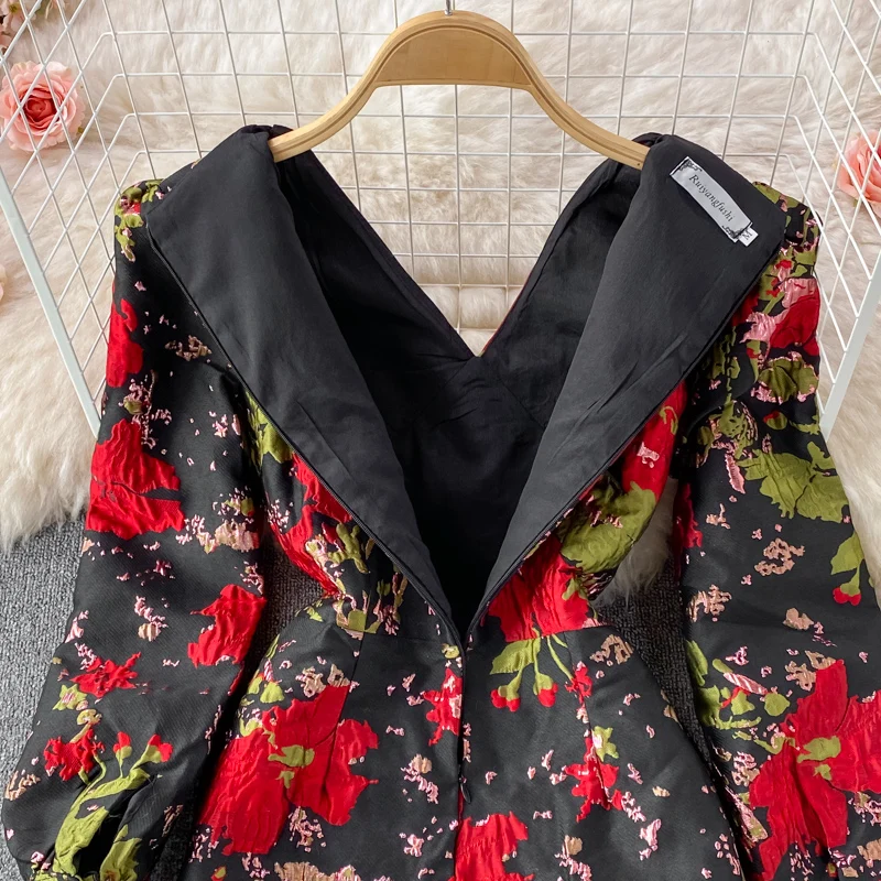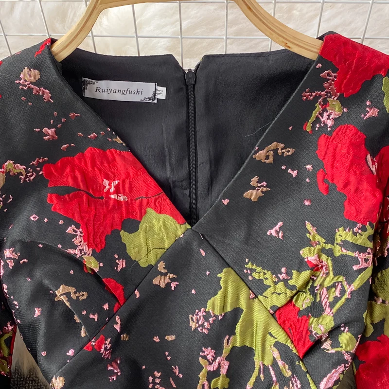Be the first to review “New Fall Vintage Jacquard Office Work Dress Women V-neck Puff Sleeve Print Slim Fit Slit Party Bodycon Designer Dresses”