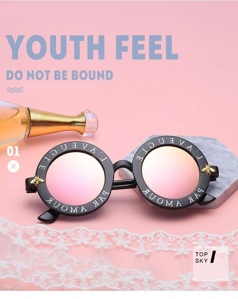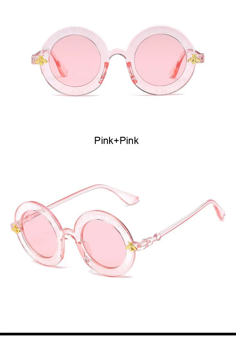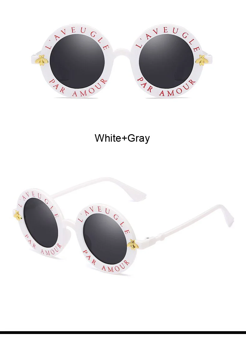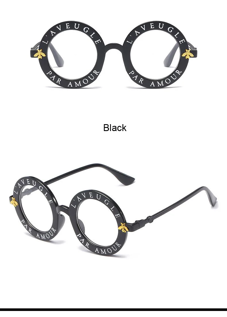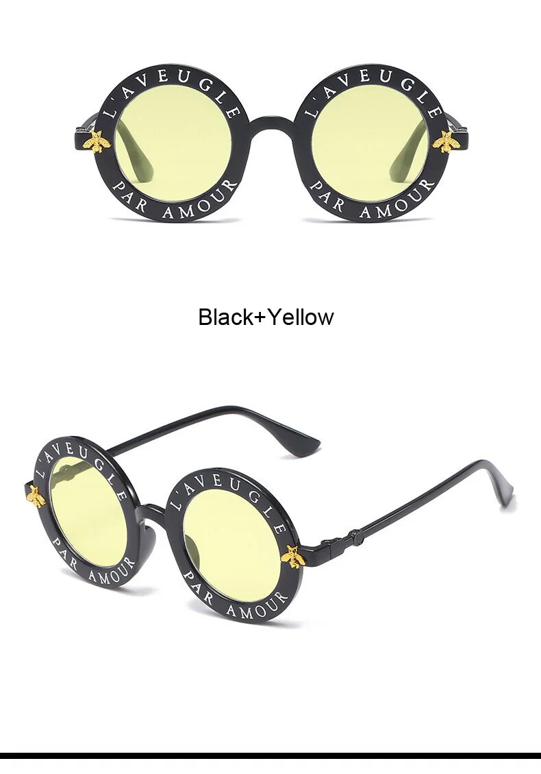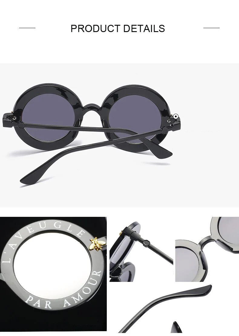 New Fashion Round Frame Sunglasses Woman Vintage Sun Glasses Female Bee Design Brand Designer UV400