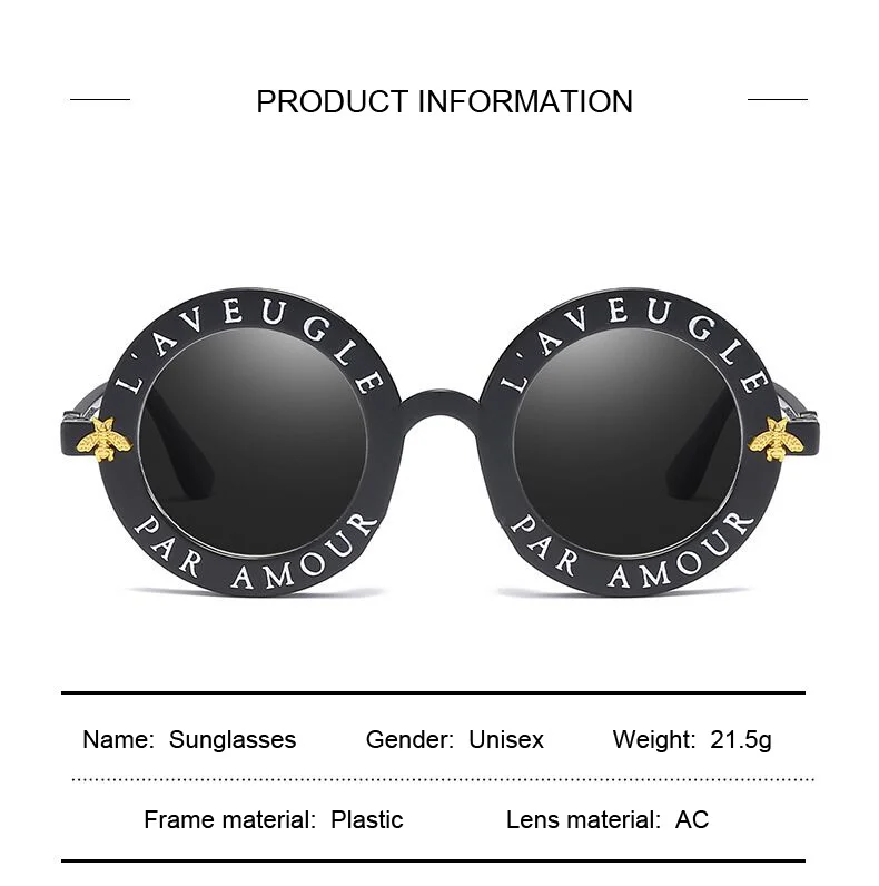 Be the first to review “New Fashion Round Frame Sunglasses Woman Vintage Sun Glasses Female Bee Design Brand Designer UV400”