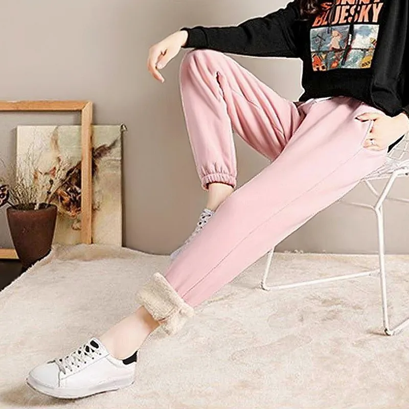 New Fleece Sweatpants Women Winter Warm Pants Trendy Ankle-Length Trousers Guard Pants Casual Sports Pants Warm Thicken Leggings