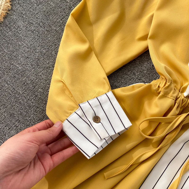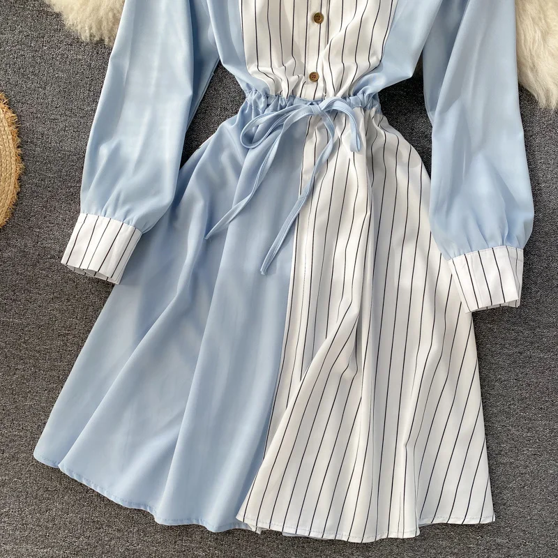 Be the first to review “New Spring Summer Striped Print Patchwork Long Sleeve Shirt Dress Women Casual Buttons Lace-up Sash A-line OL Work Dress”