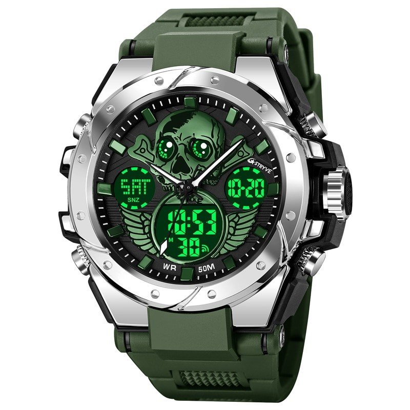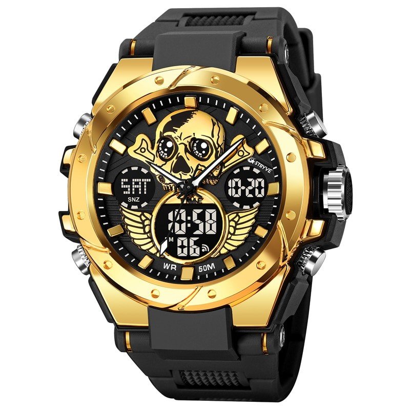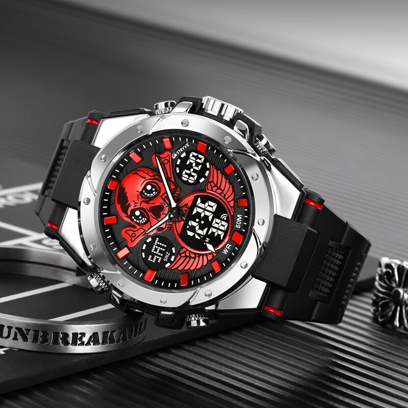New Men’s Watch Creative Skull Design Digital-Analog Dual Display Watches Calendar Stopwatch Multifunction Watches