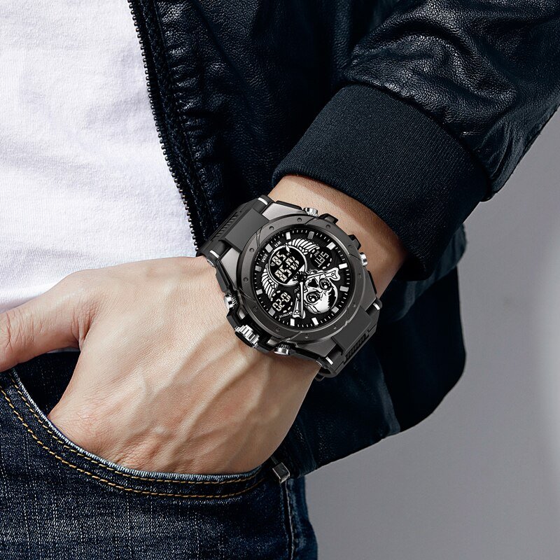 Be the first to review “New Men’s Watch Creative Skull Design Digital-Analog Dual Display Watches Calendar Stopwatch Multifunction Watches”