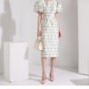 New Summer Dresses Womens Retro Office Party Elegant Simple Series Dress Lantern Sleeve Print Pencil Vestidos