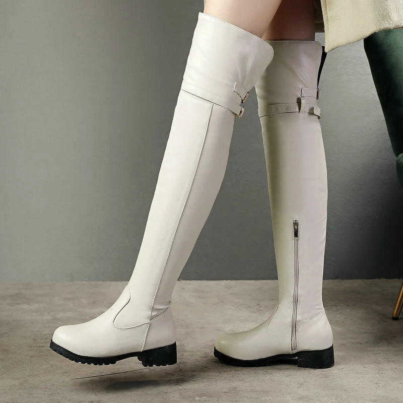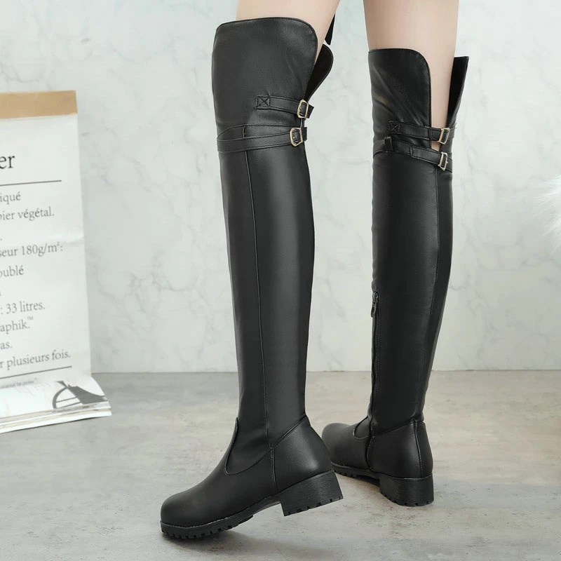New Winter Boots Women’s Shoes PU Over the Knee Boots Side Zipper Low Heel Non-slip Bottom Women Winter High Boots Warm Boots