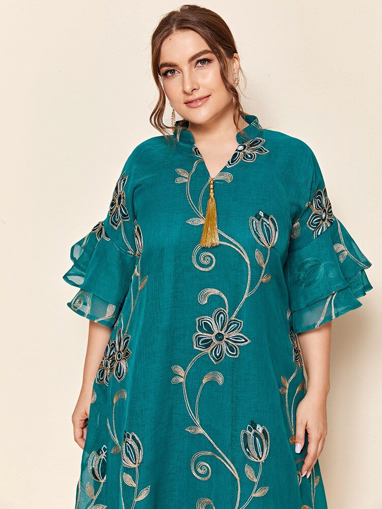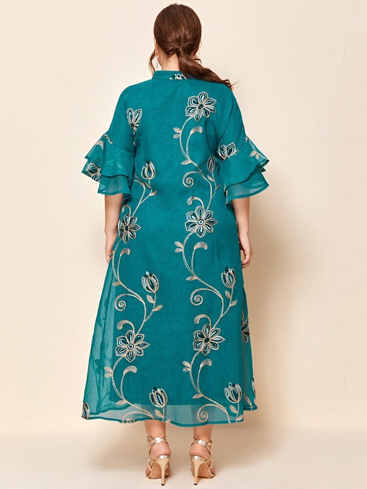 New Women Plus Size Large Evening Maxi Dress Summer Casual Elegant Blue Long Abaya Muslim African Oversized Clothing