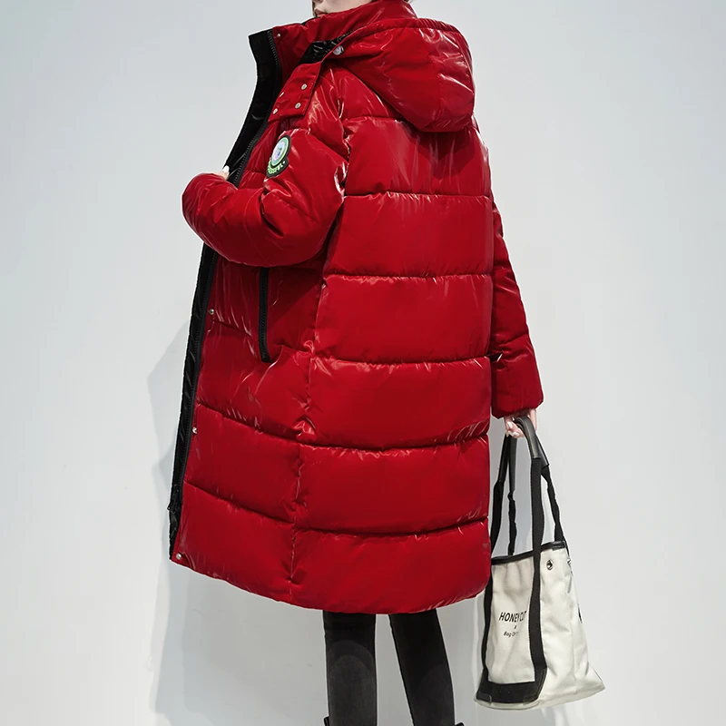 New Women Winter Long Parkas Hooded Thicken Warm Female Snow Wear Coat Padded Loose Clothes Hat Detachable Jacket