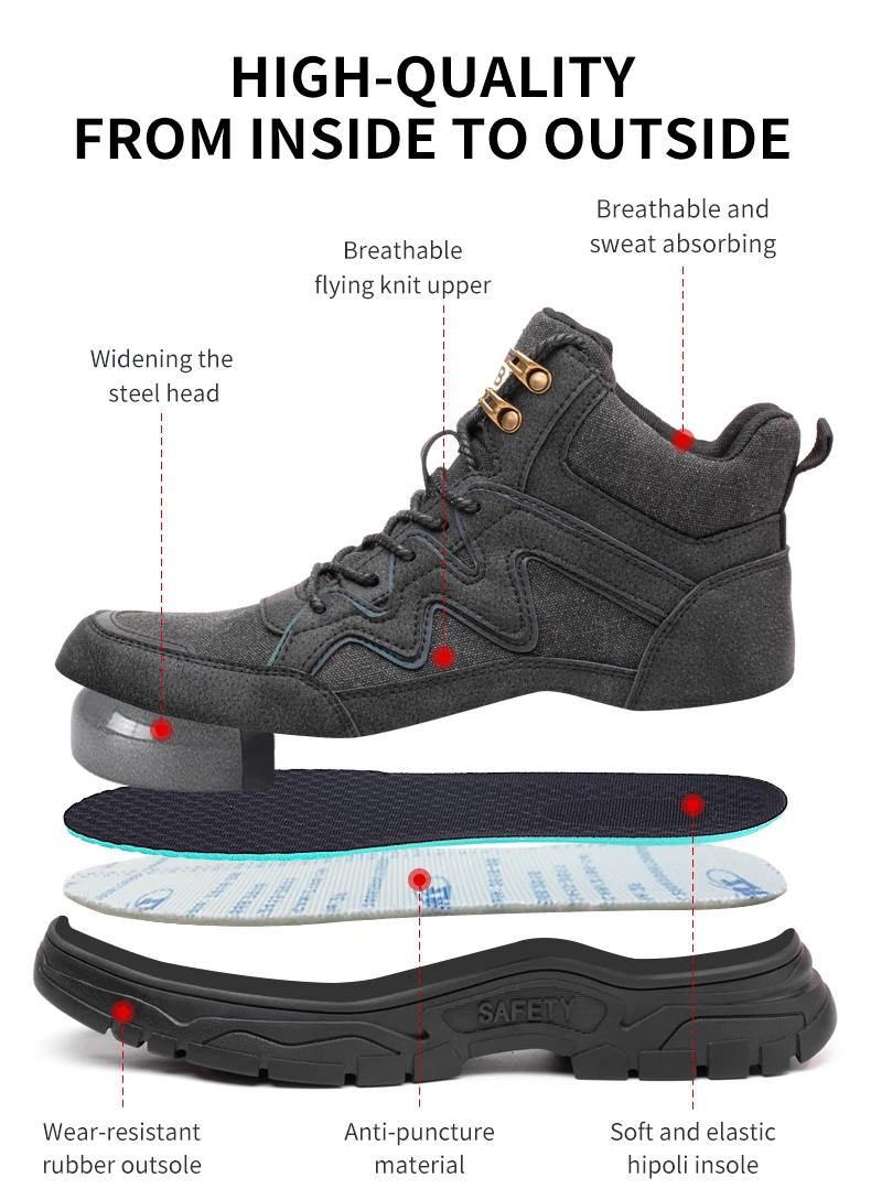 New Work Boots Safety Steel Toe Shoes Men Protective Shoes Work Sneakers Anti-smash Anti-puncture Safety Shoes Hiking Boots