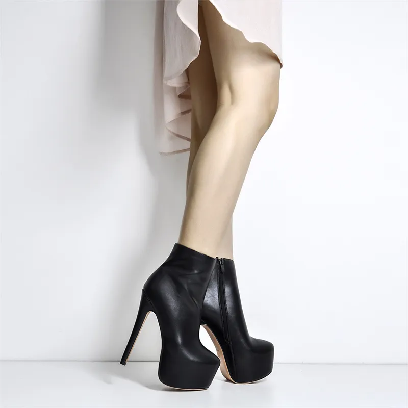 Women Ankle Boots Rounded Toe 16CM High Heel Black Side Zipper Slim Fashion Matte Plus Size Warm Winter Booties