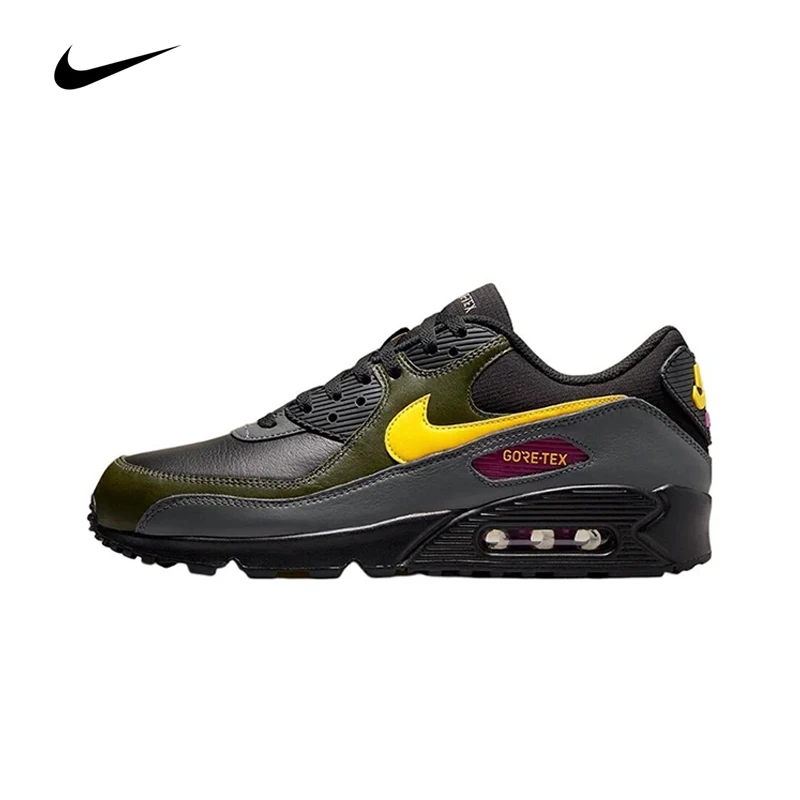 Original Nike Air Max 90 Vintage Men’s Running Shoes Wear Resistant Shock Absorption Breathable Black Yellow Sneakers DJ9779-001