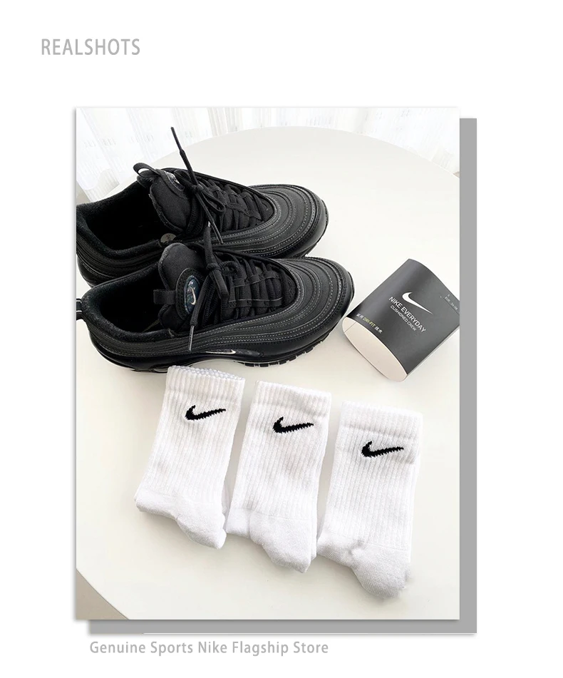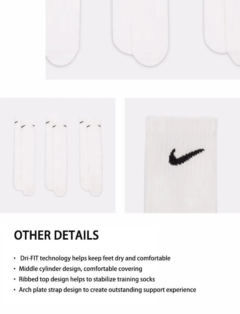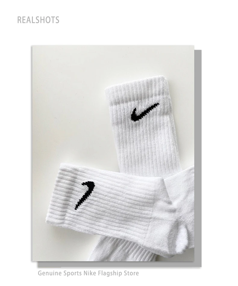 Original Nike Everyday Lightweight Unisex Sports Socks Men’s and Women’s 3 Pairs Train Middle Barrel White Socks S M L XL SX7676