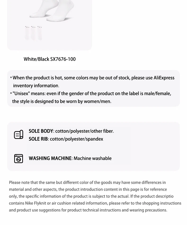 Be the first to review “Original Nike Everyday Lightweight Unisex Sports Socks Men’s and Women’s 3 Pairs Train Middle Barrel White Socks S M L XL SX7676”