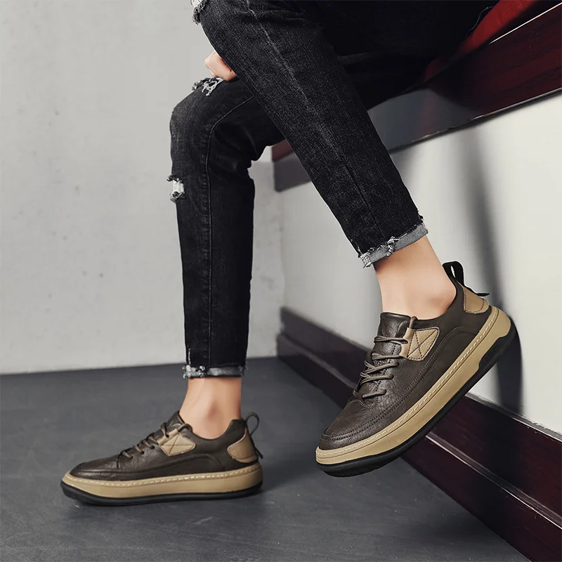 Outdoor Business Formal Casual Shoes Cow Leather Soft Men Sneakers Designer Skateboard shoes New Luxury Brand Leather Mens Shoes