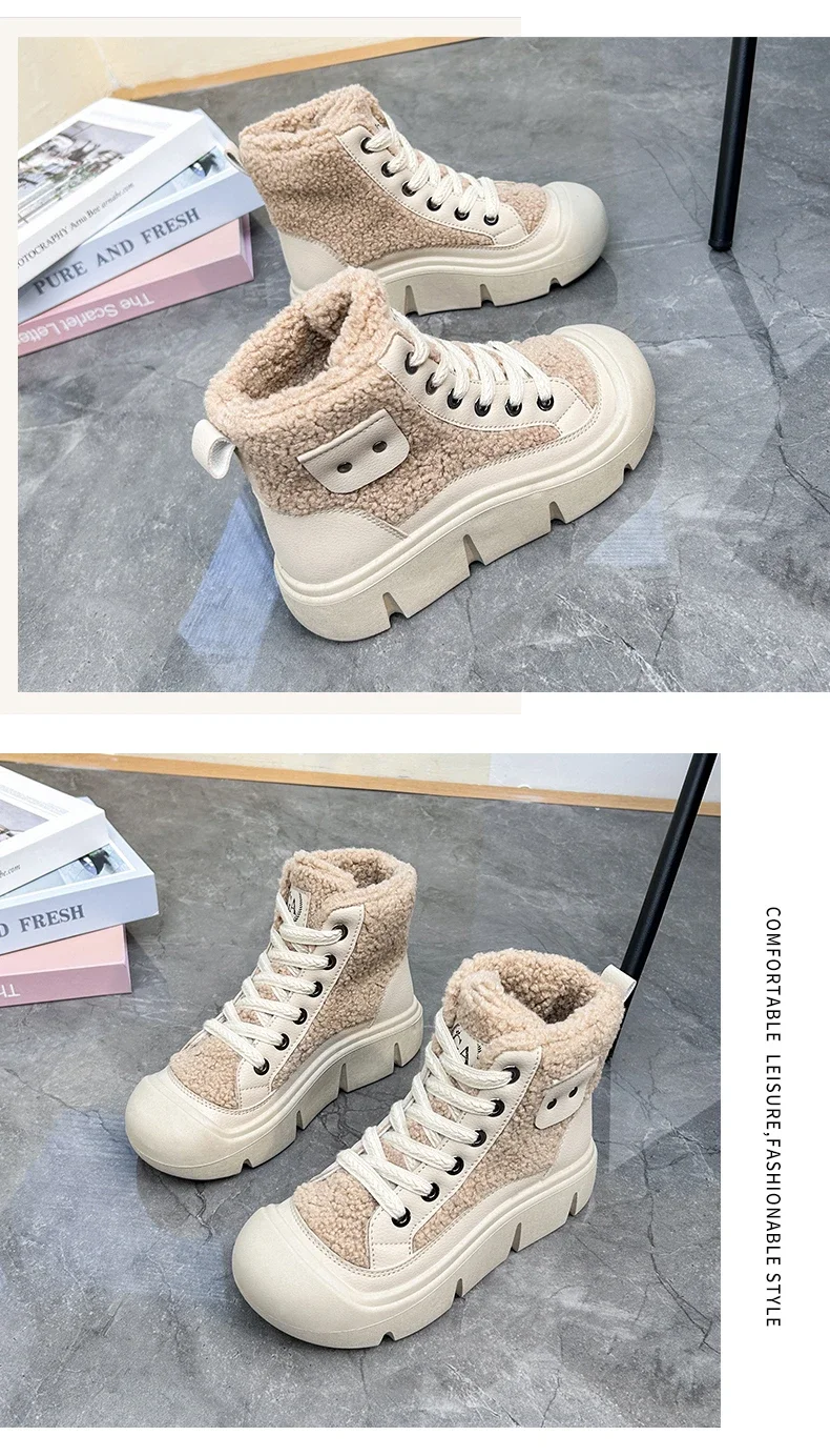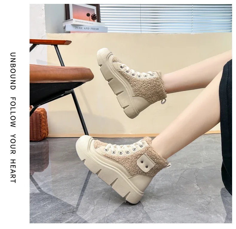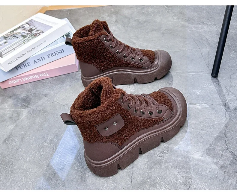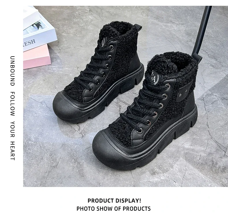 Be the first to review “Platform Non-slip Fashion Women’s Boot Platform Black Lace-up 2024 Winter Warm Round Toe Ankle Boots Zapatos De Mujer”