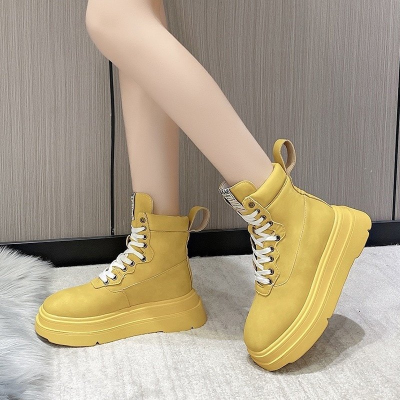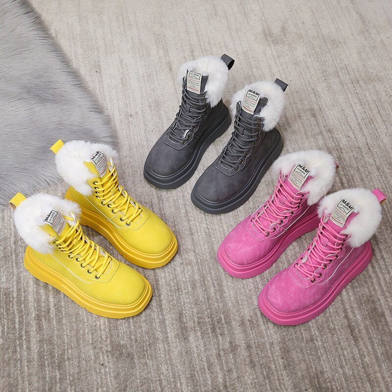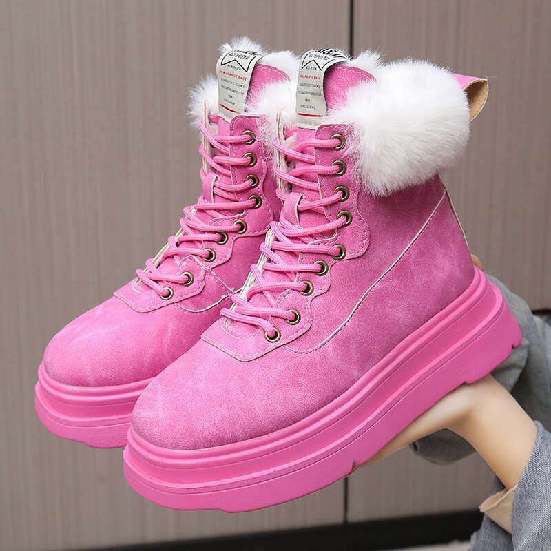 Platform Wedges Women’s Boots Fashion Retro Lace-up Ankle Boots Brand Luxury Designer Footwear 2 Pink Shoes Woman