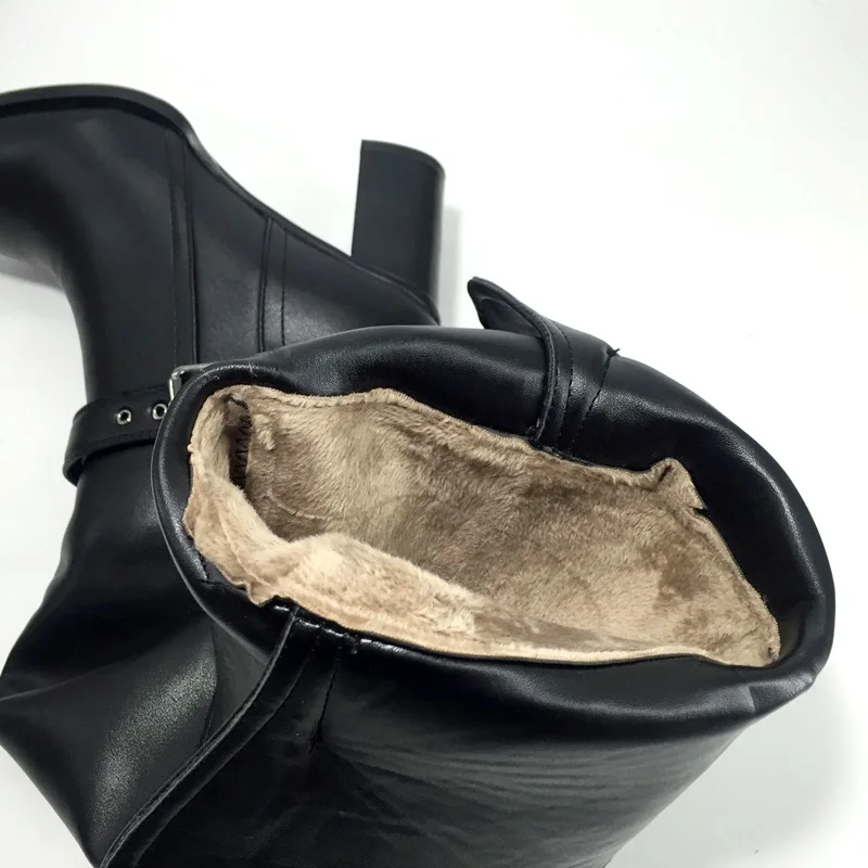 Plus size fashion autumn winter warm short plush boots women over the knee high heels boots black leather female high heel shoes
