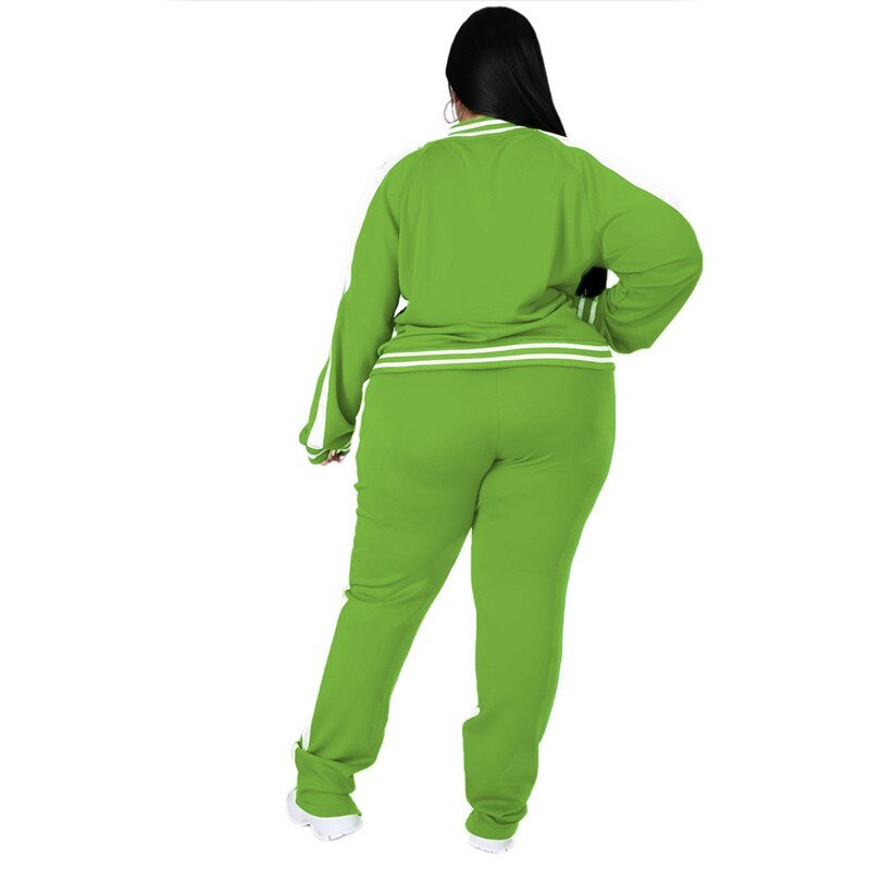 Plus Size L-5XL Two Piece Set Women Zipper Striped Top Slit Pants Casual Jogger Outfit Matching Set Mujor