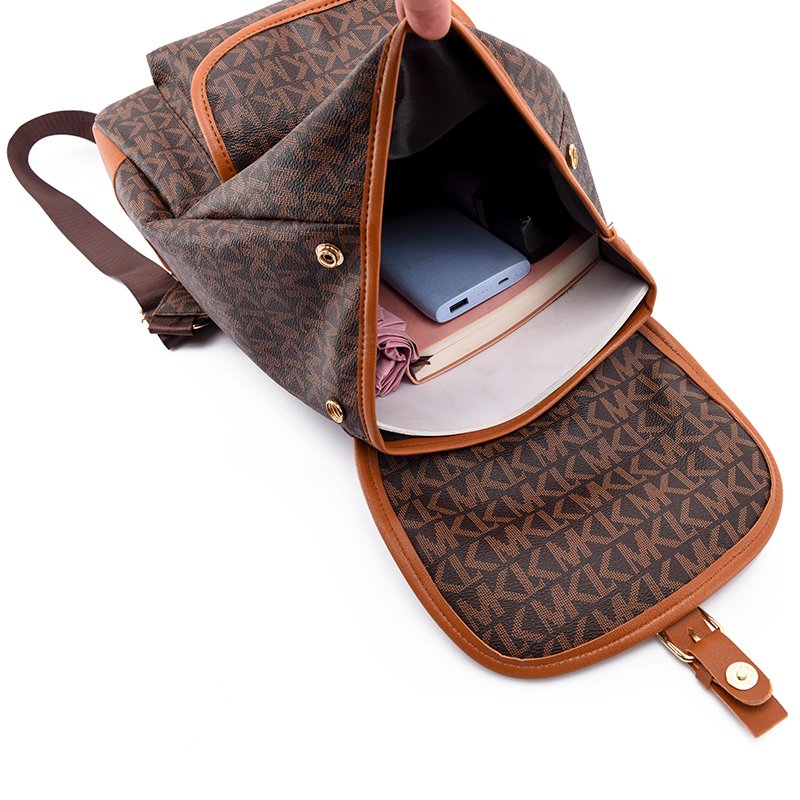 Retro Print Design Backpack Selection High Leather PU Texture Backpack Large Capacity Anti Theft And Water Repellent School Bags