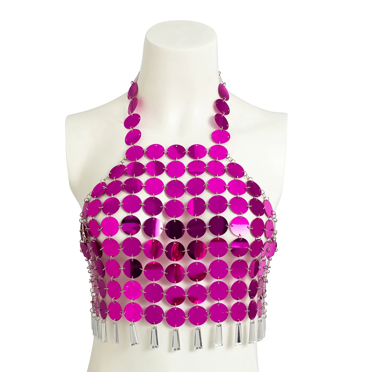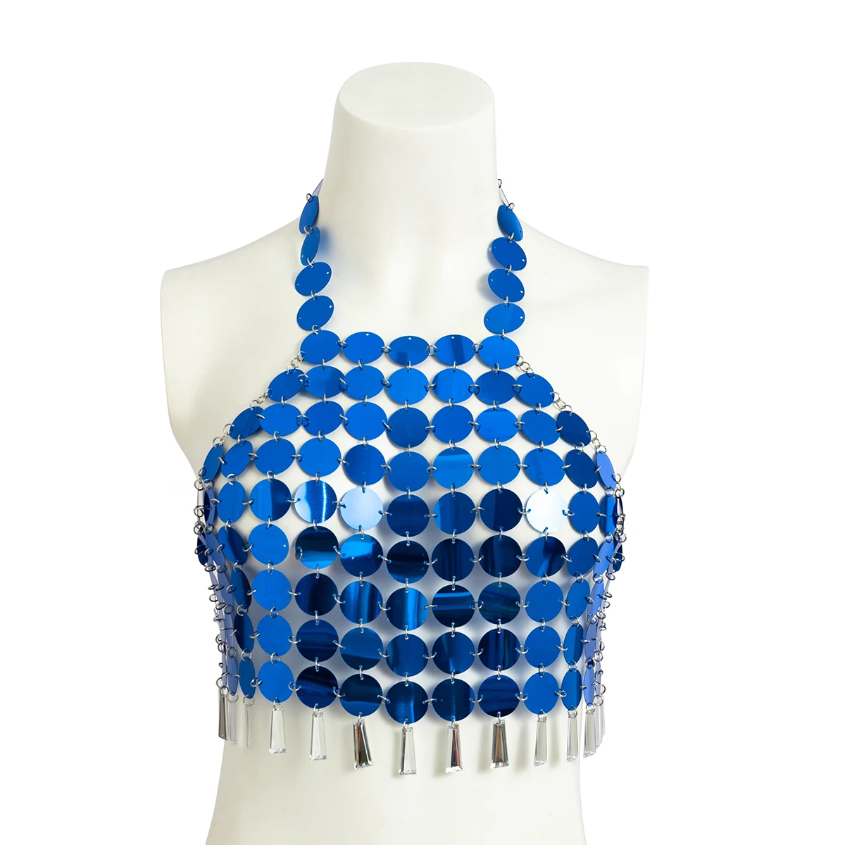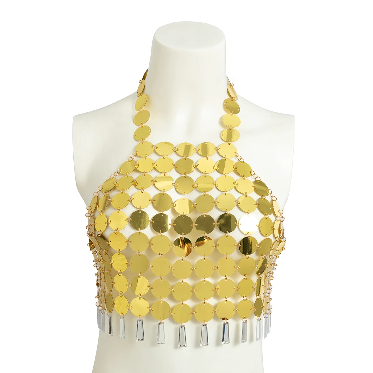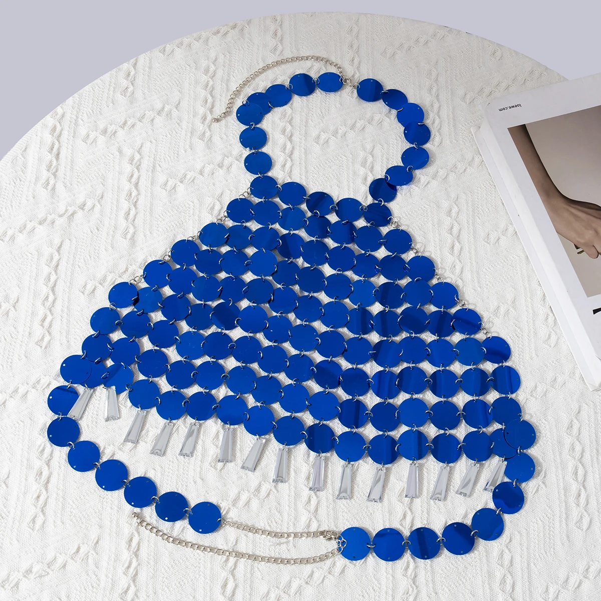 Sexy Sequins Hanging Neck Bra Top Chest Chain Women Summer Beach Crystal Tassel Pendant Body Festival Y2K Jewelry