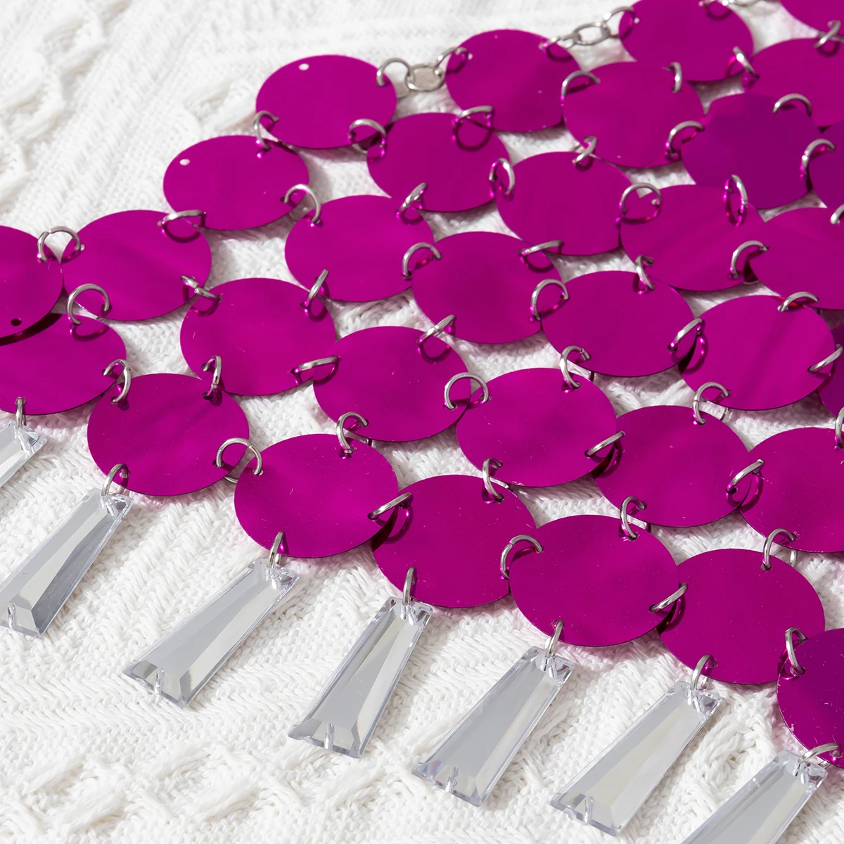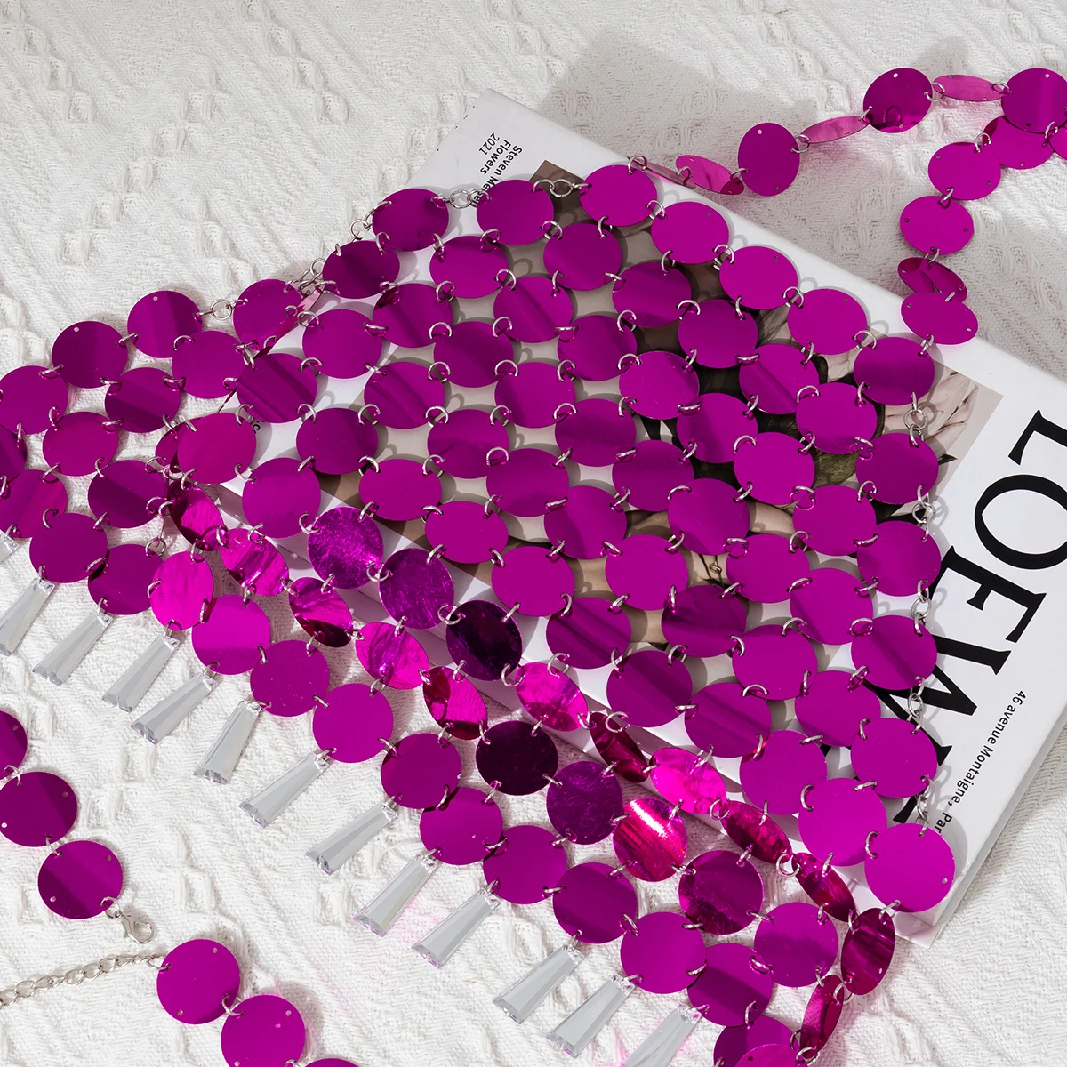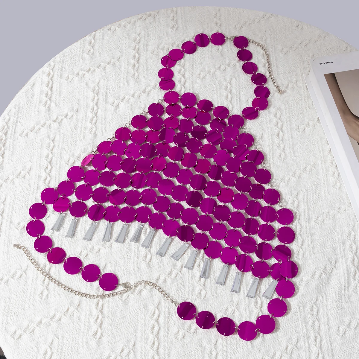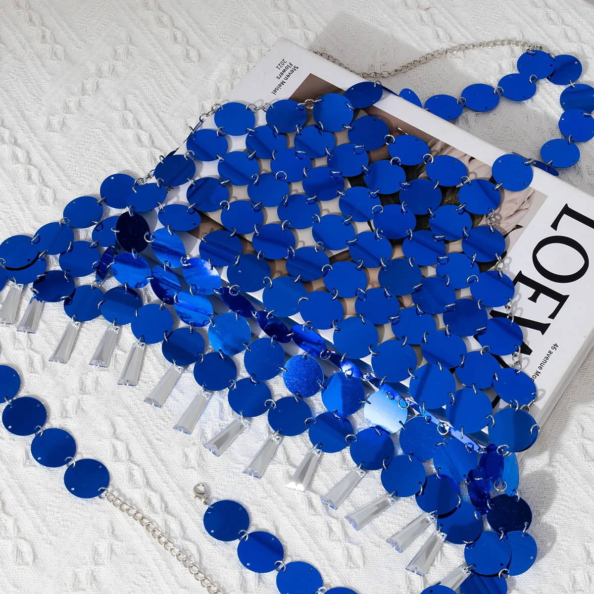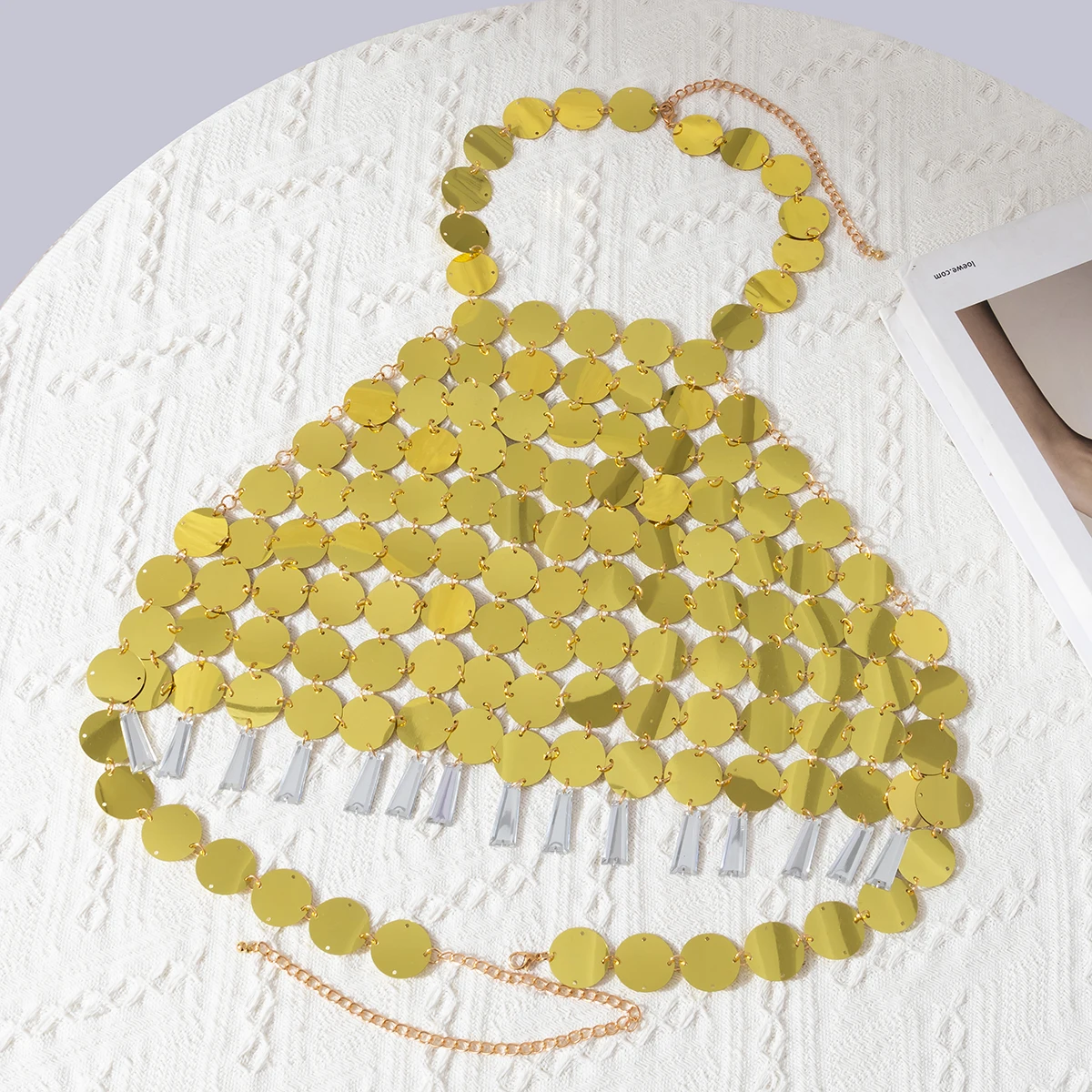 Sexy Sequins Hanging Neck Bra Top Chest Chain Women Summer Beach Crystal Tassel Pendant Body Festival Y2K Jewelry
