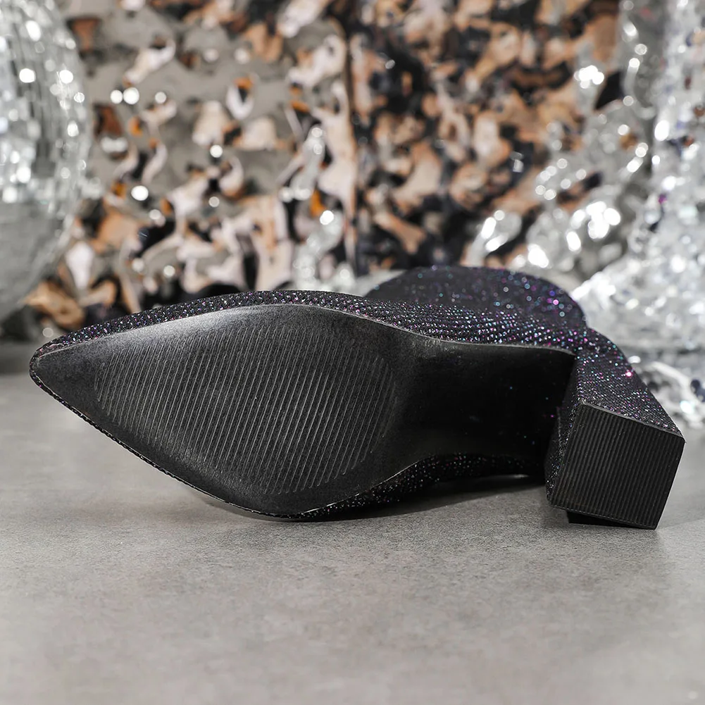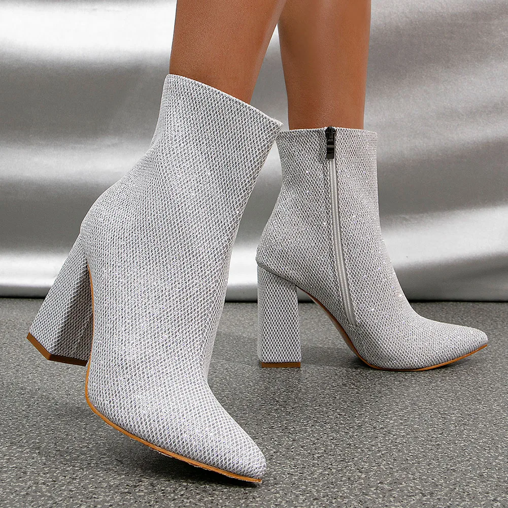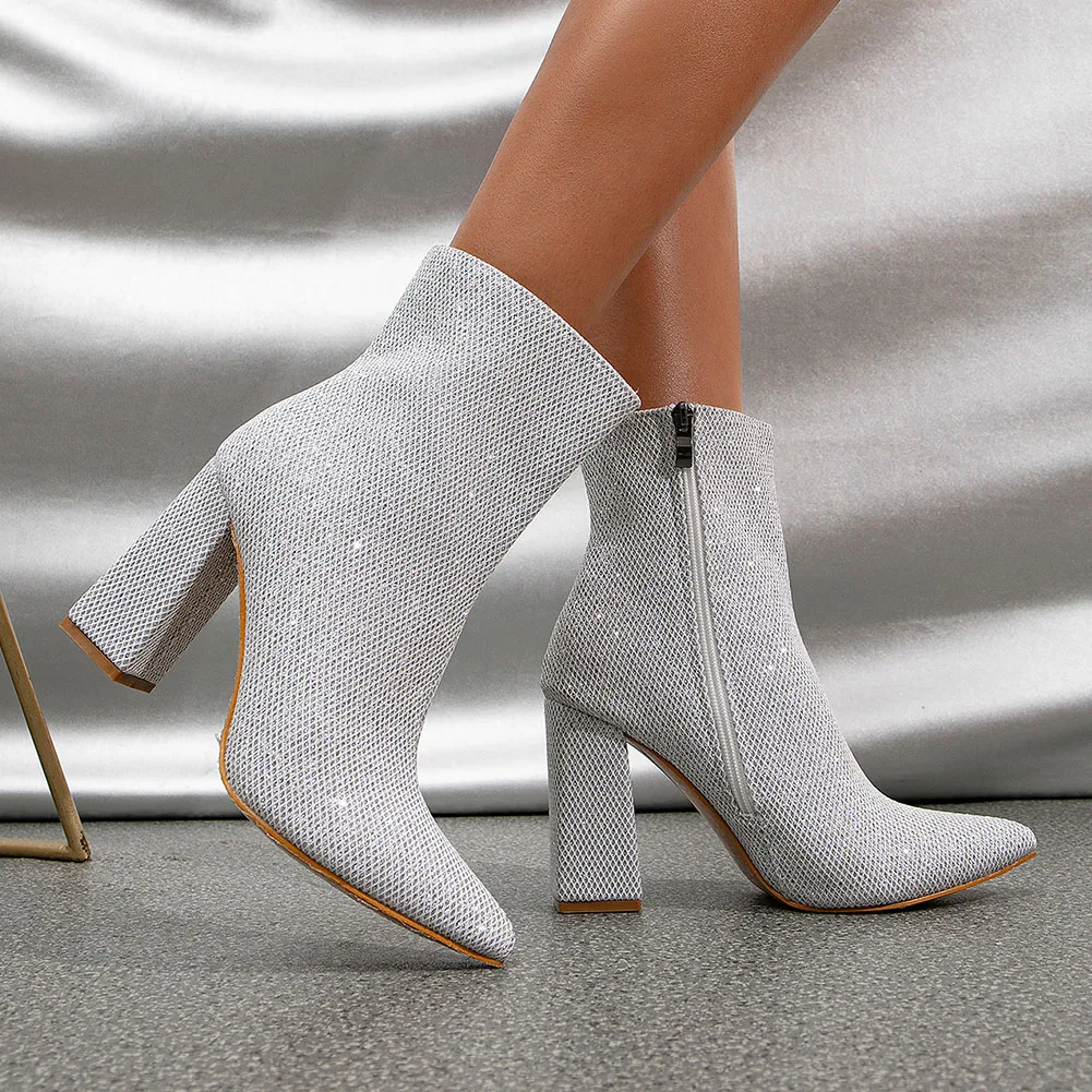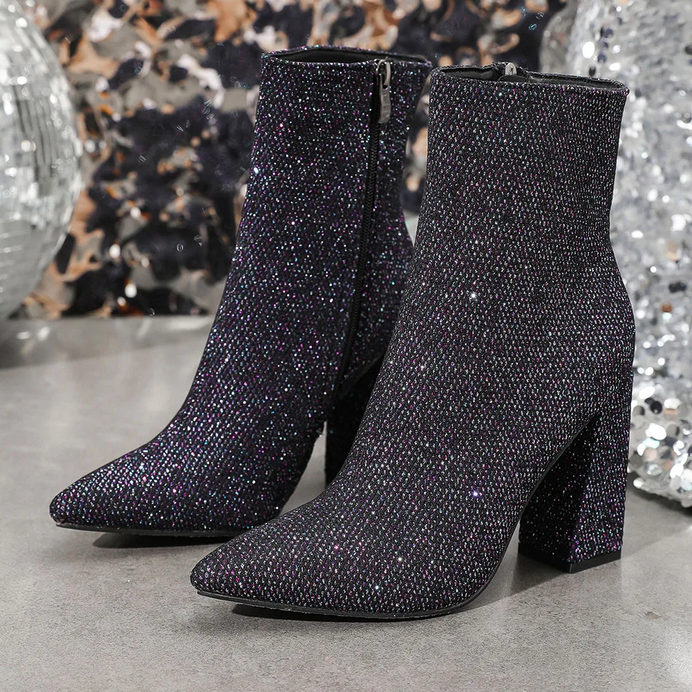 Shiny Thick High Heel Ankle Boots For Women Luxury Elegant Fashion Party Woman’s Shoes Autumn Winter Hot Sale Ladies Short Boots