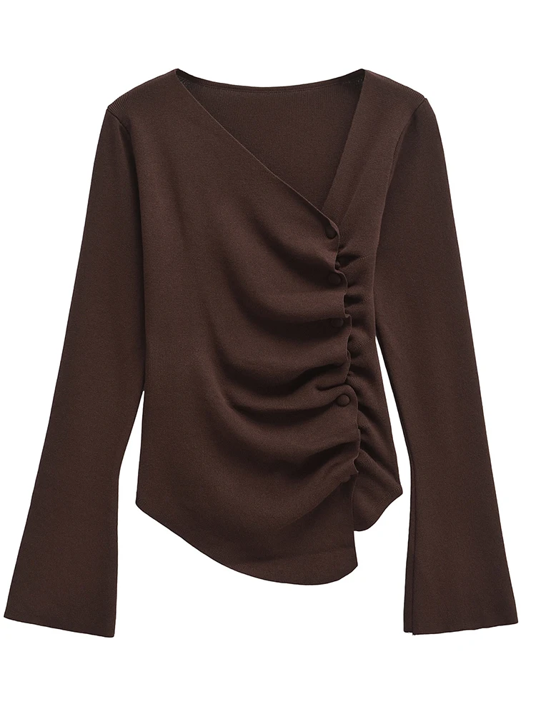 Be the first to review “Solid Spliced Folds Designer T Shirt For Women Skew Collar Long Sleeve Patchwork Buttons Chic T Shirts Female New”
